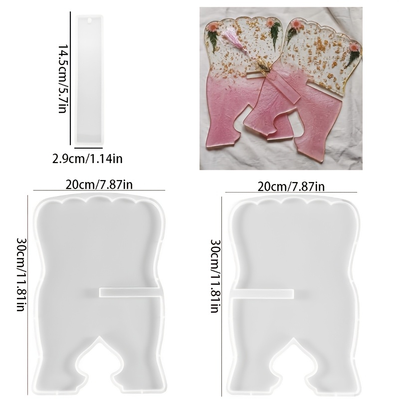 تتضمن المجموعة 3 قطع، منها رفان للقراءة وقالب سيليكون مستطيل الشكل لصنع فاصل كتب، وهي مناسبة للأعمال اليدوية باستخدام الجبس والطين وراتنج الإيبوكسي لإنشاء أعمال فنية. تتميز المجموعة بتصميم بسيط وإبداعي.