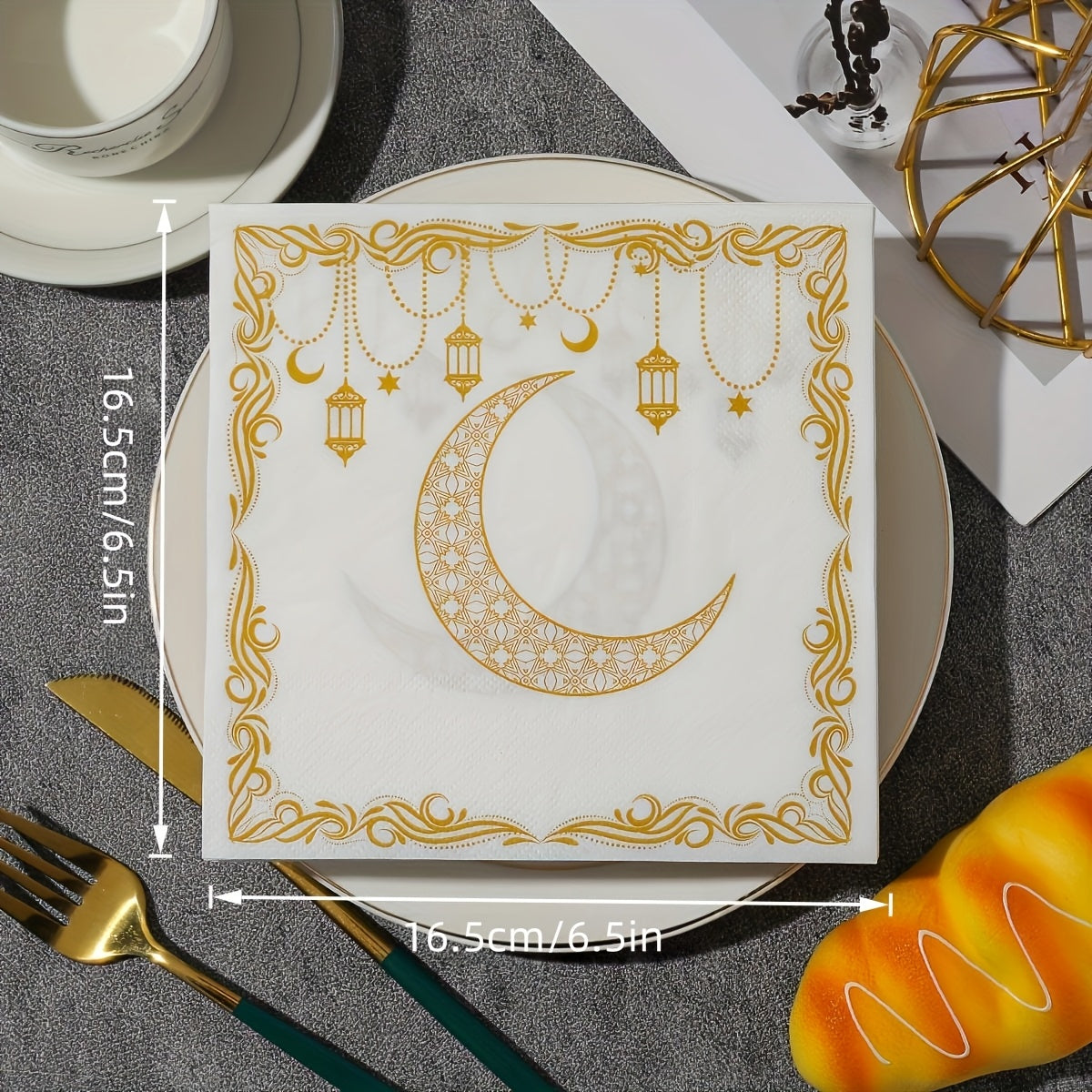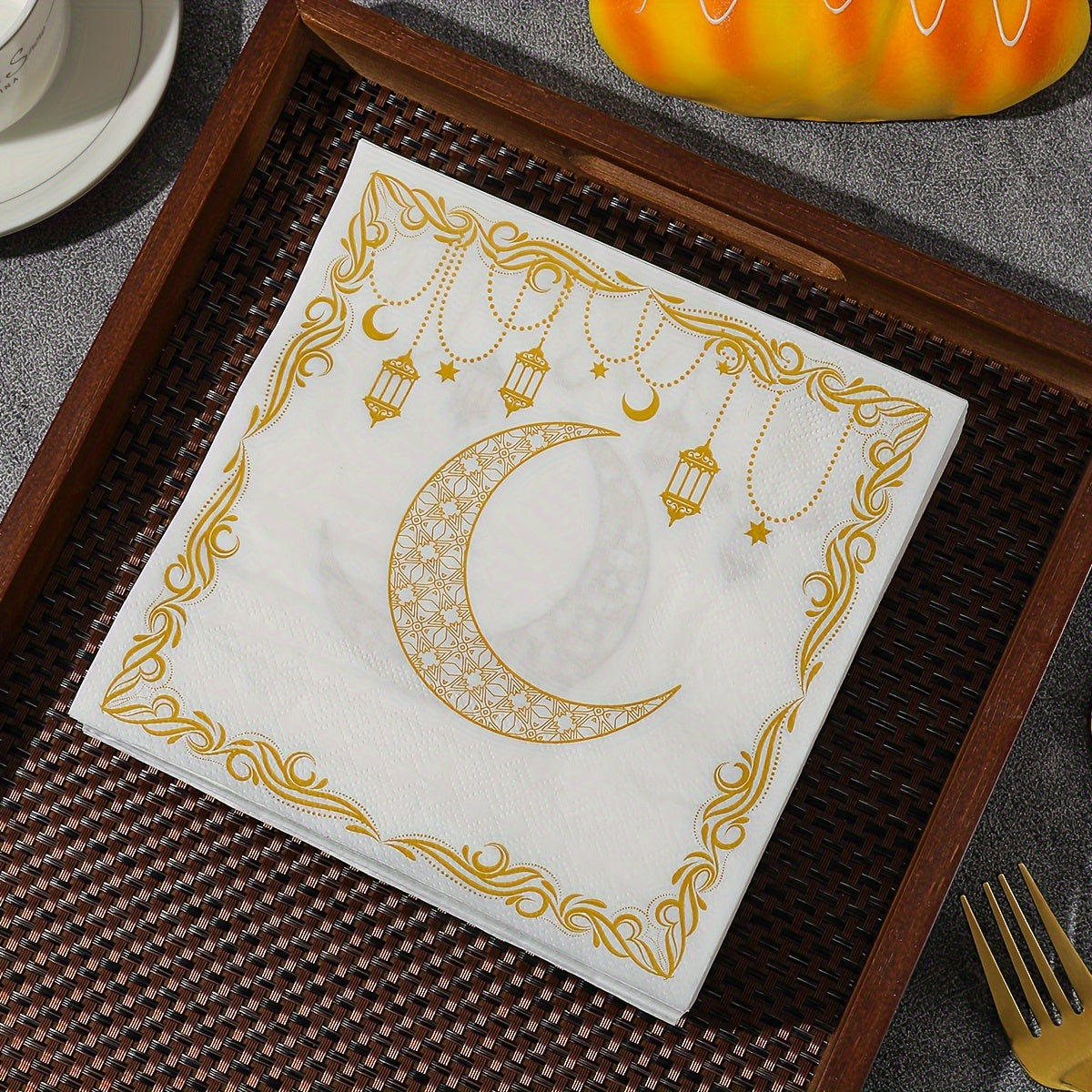 ٨٠ قطعة من مناديل إسلامية أنيقة على شكل هلال | مناشف ورقية مزدوجة الطبقات للاستخدام مرة واحدة لتزيين موائد رمضان والعيد، بنقوش هلالية مميزة للتجمعات الإسلامية والأنشطة الإسلامية