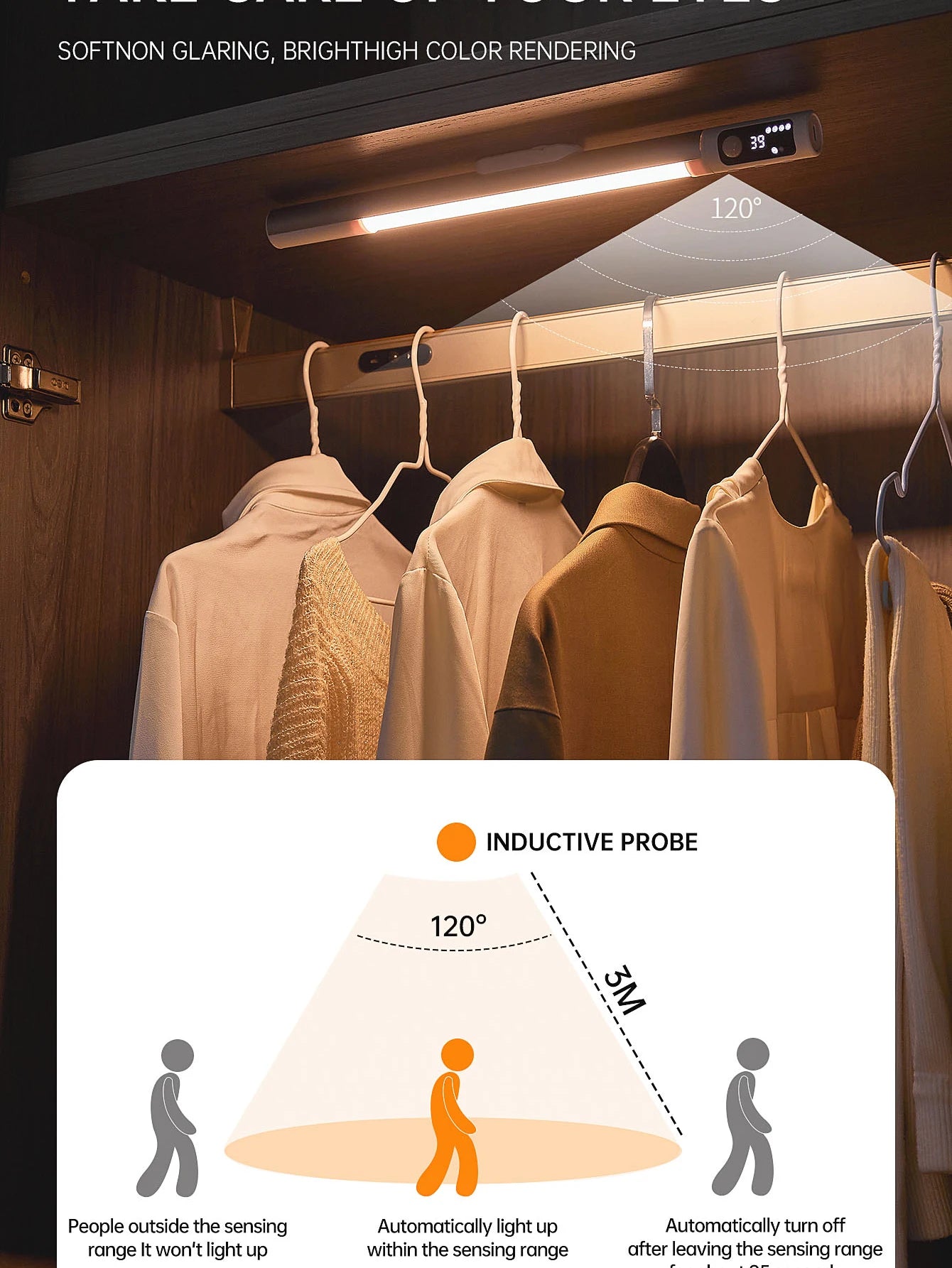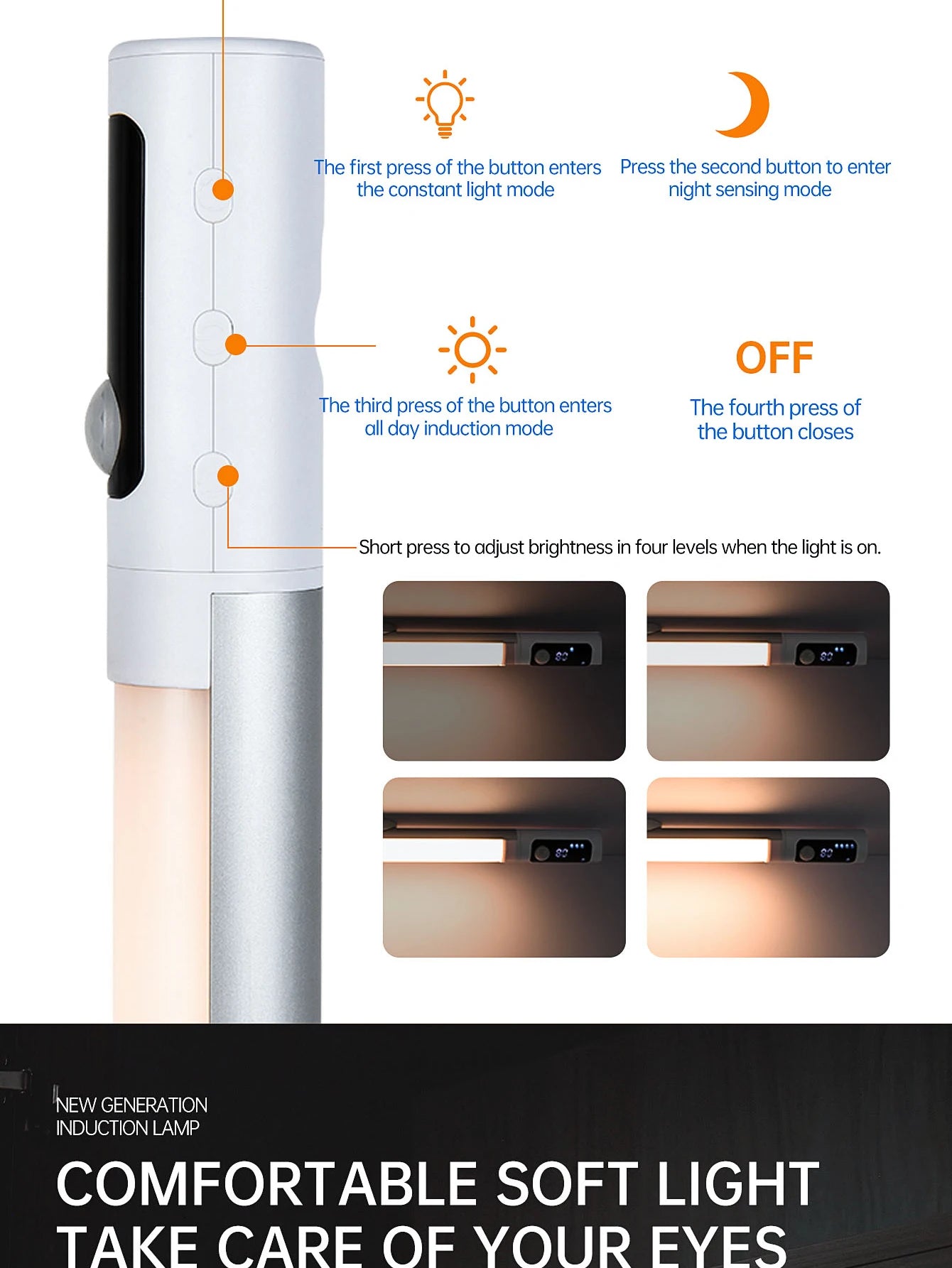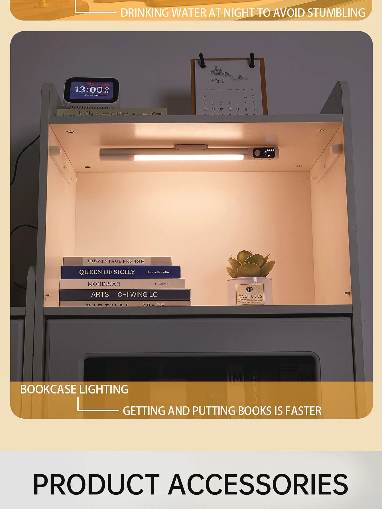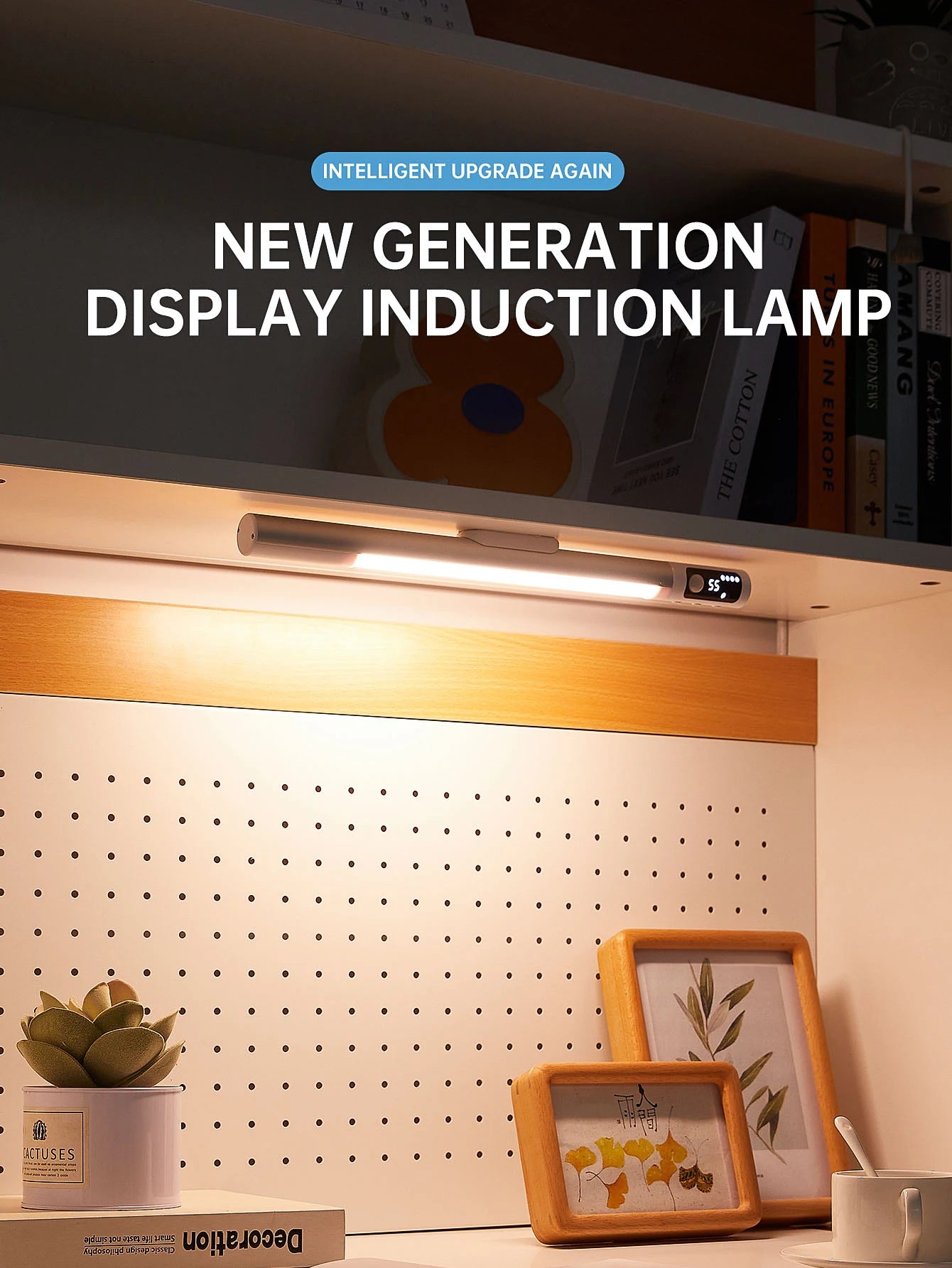 مصباح ليلي مزود بمستشعر حركة - مصباح مكتب وخزانة LED قابل لإعادة الشحن من النوع C مع شاشة رقمية
