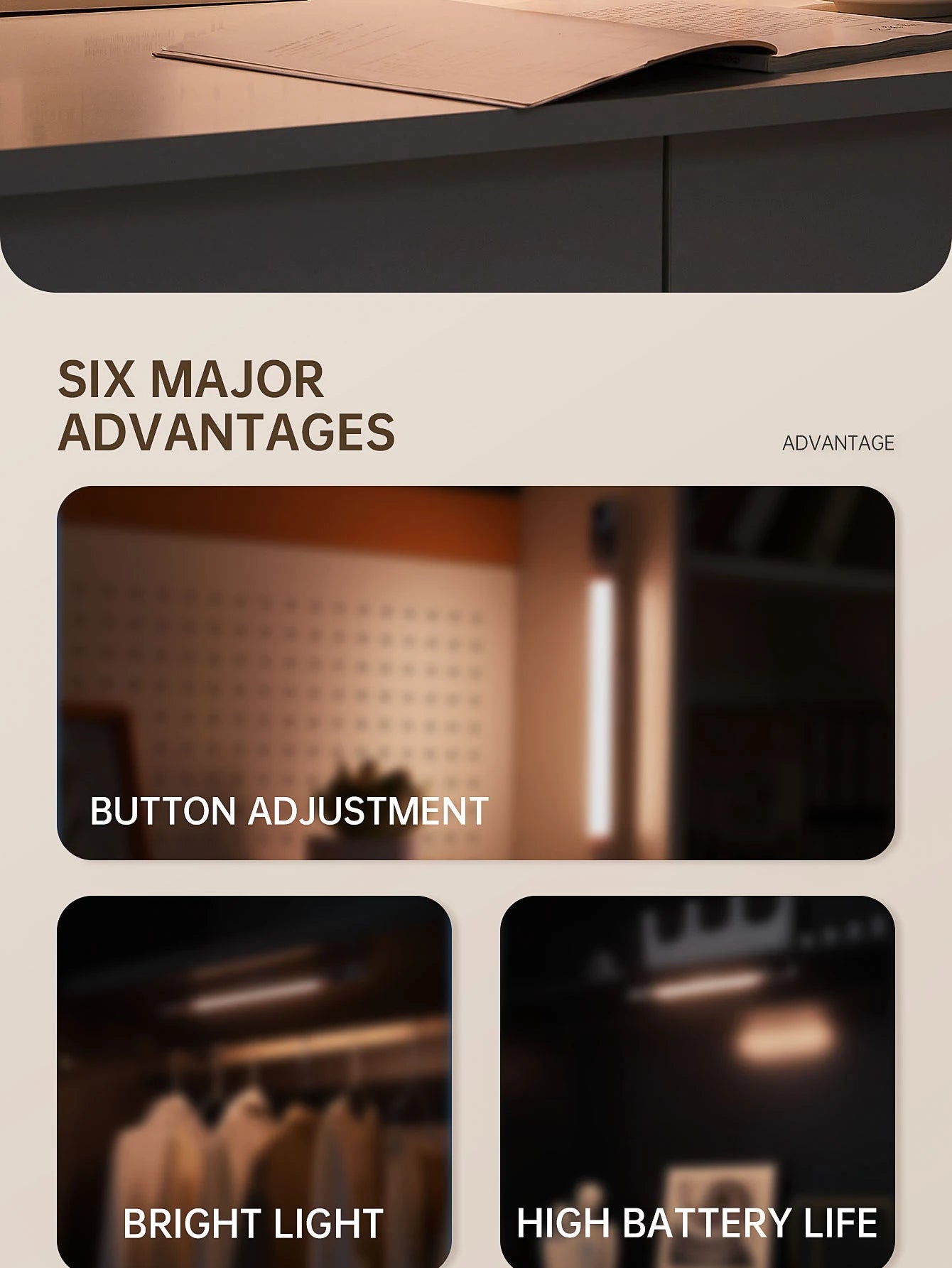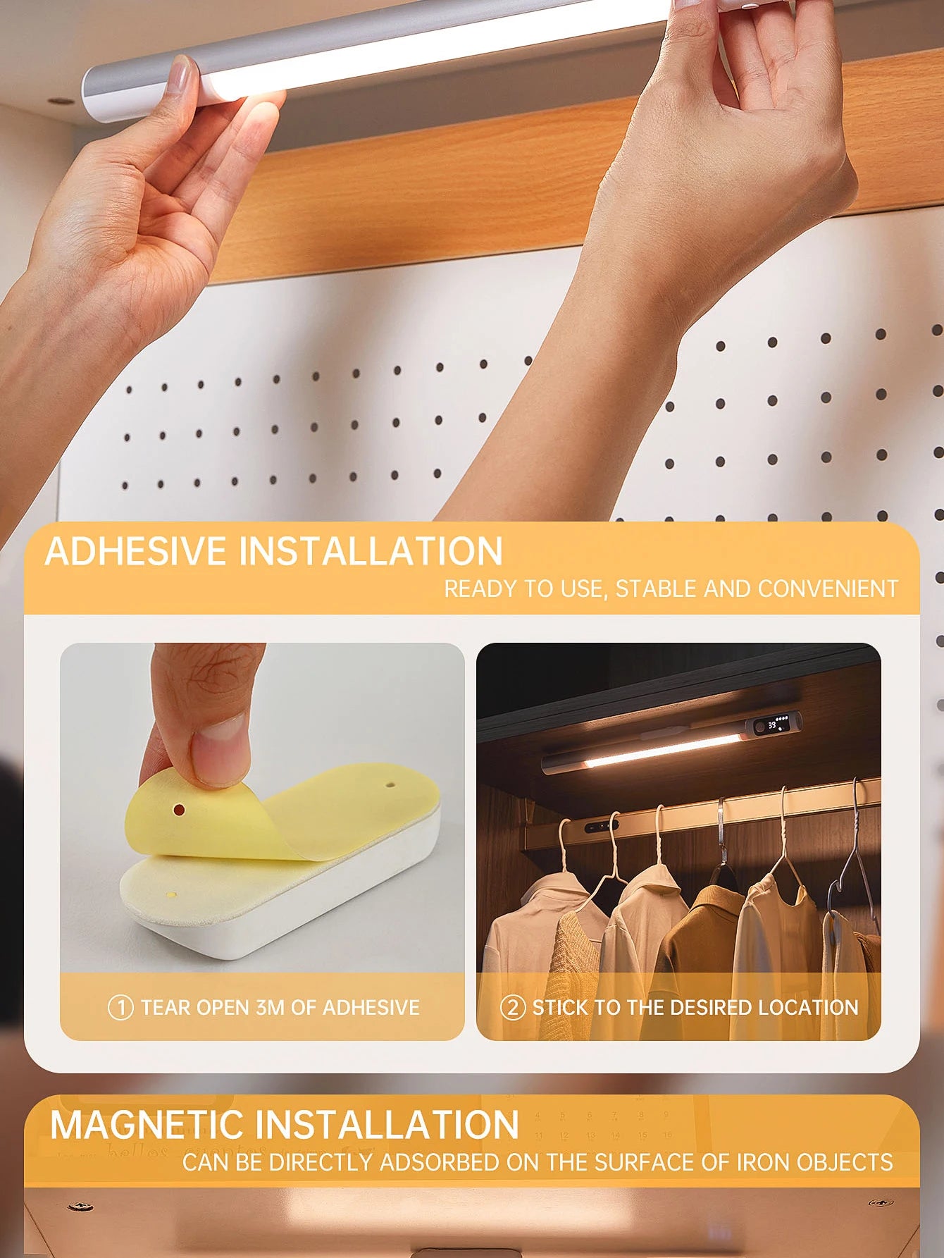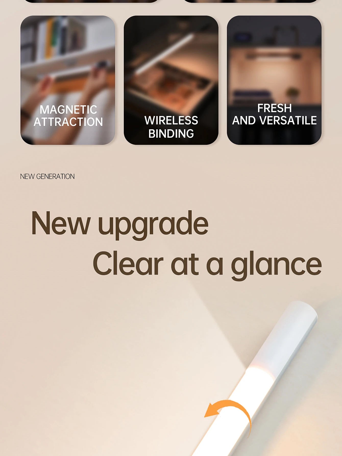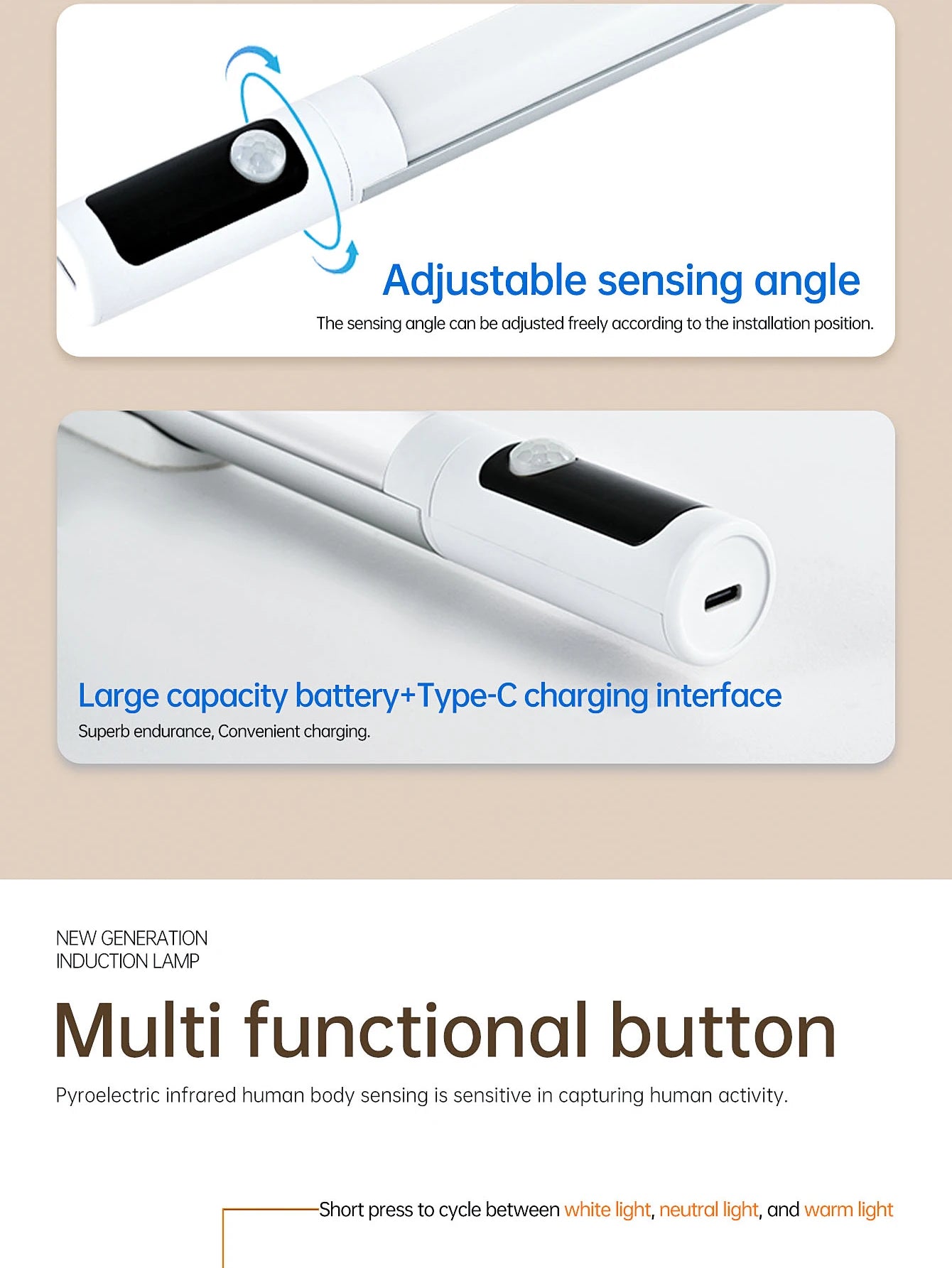 مصباح ليلي مزود بمستشعر حركة - مصباح مكتب وخزانة LED قابل لإعادة الشحن من النوع C مع شاشة رقمية