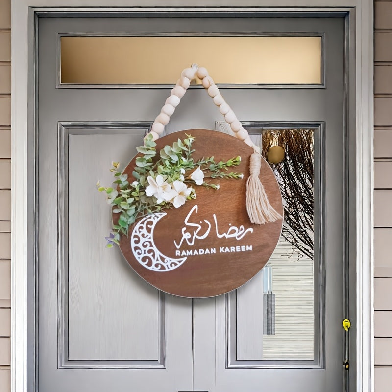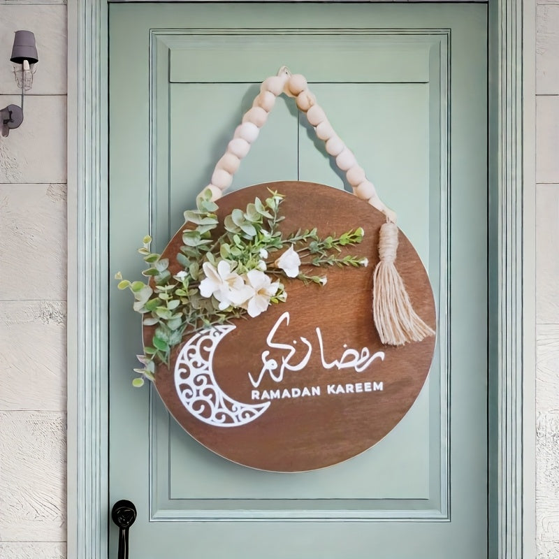 [إكليل رمضان كريم] إكليل رمضان كريم كبير - ديكورات منزلية وحفلات أنيقة من خشب البتولا