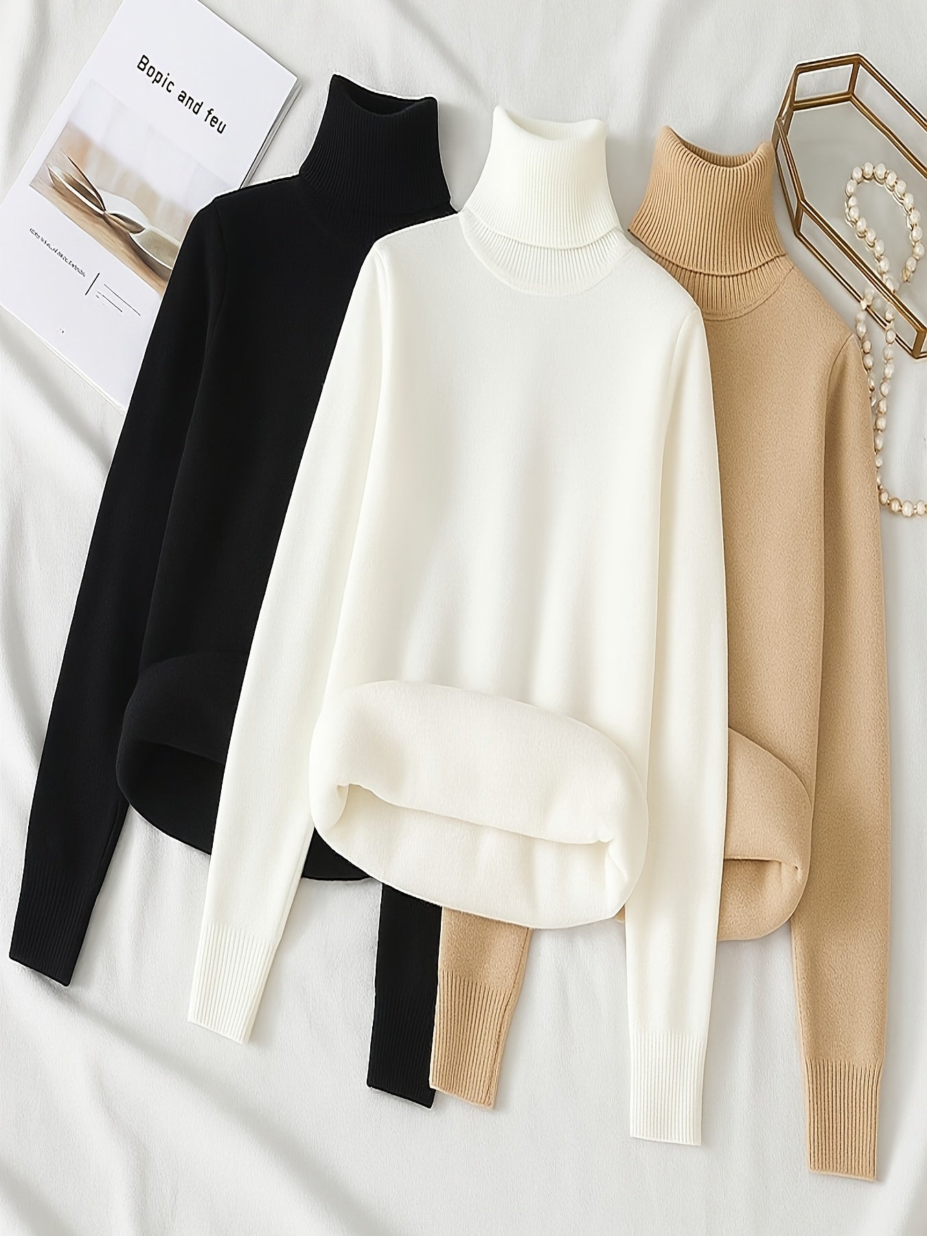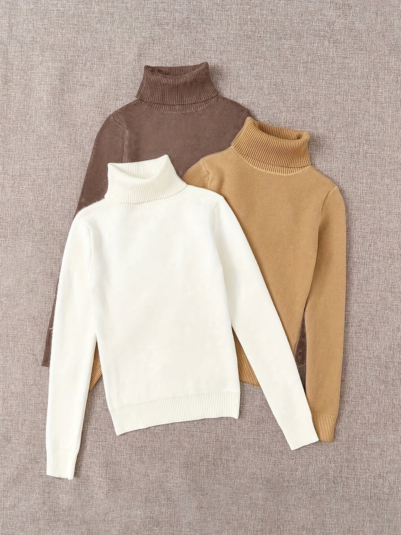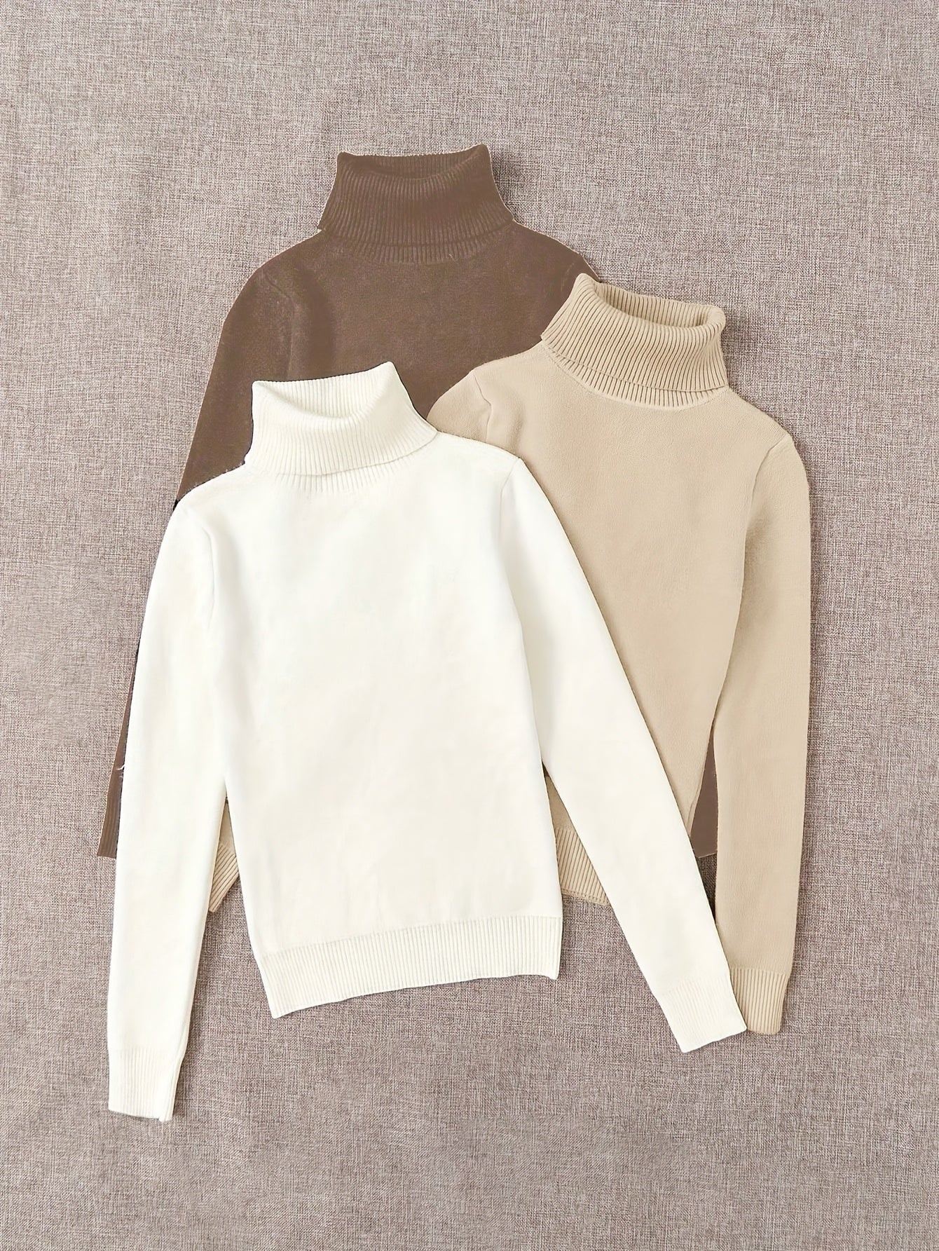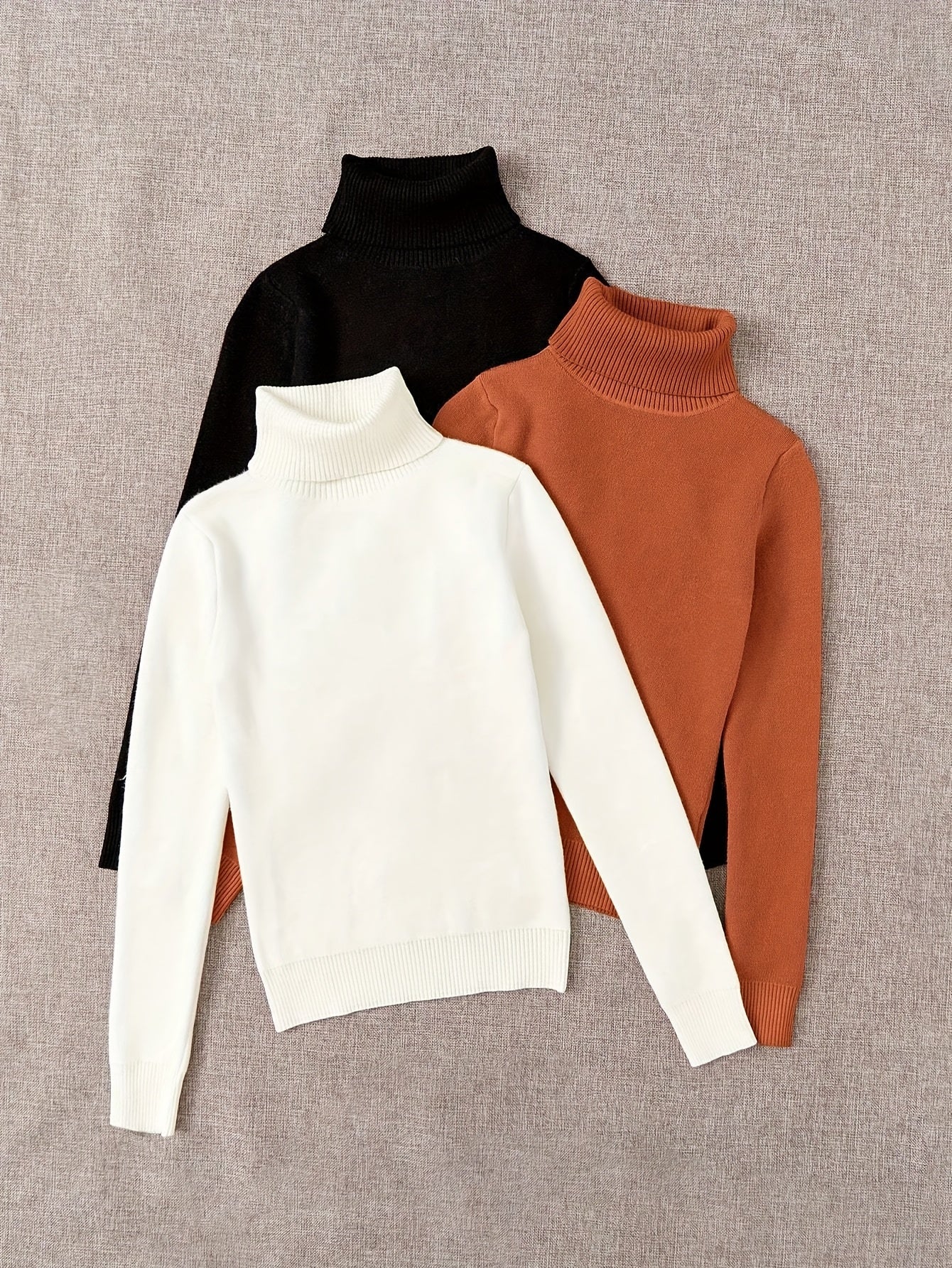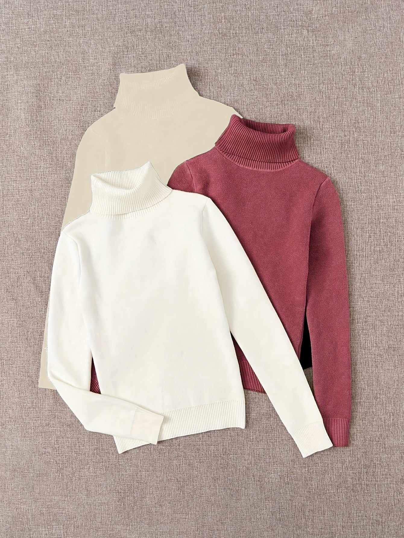 طقم سويت شيرت نسائي من 3 قطع برقبة عالية - ملابس تريكو خريف/شتاء