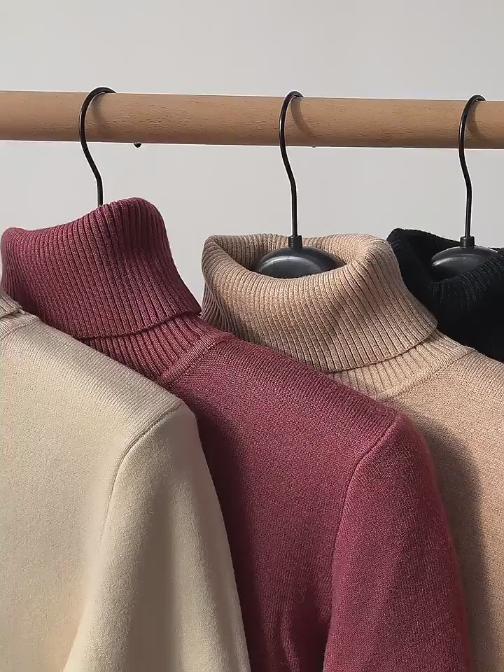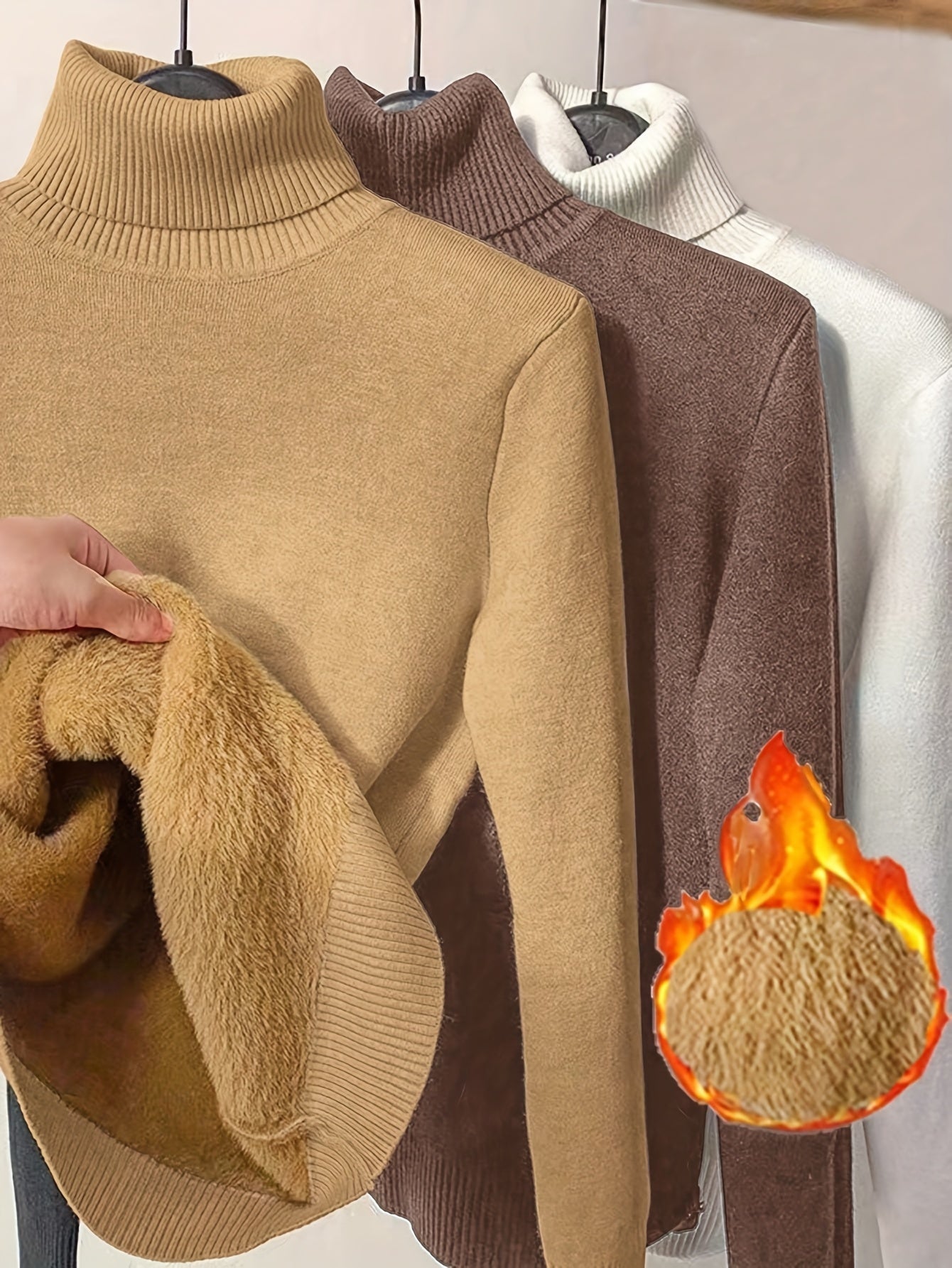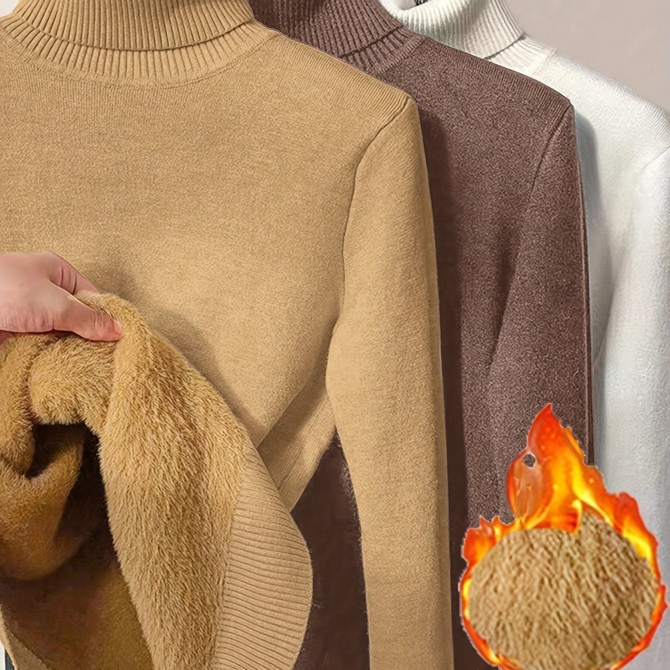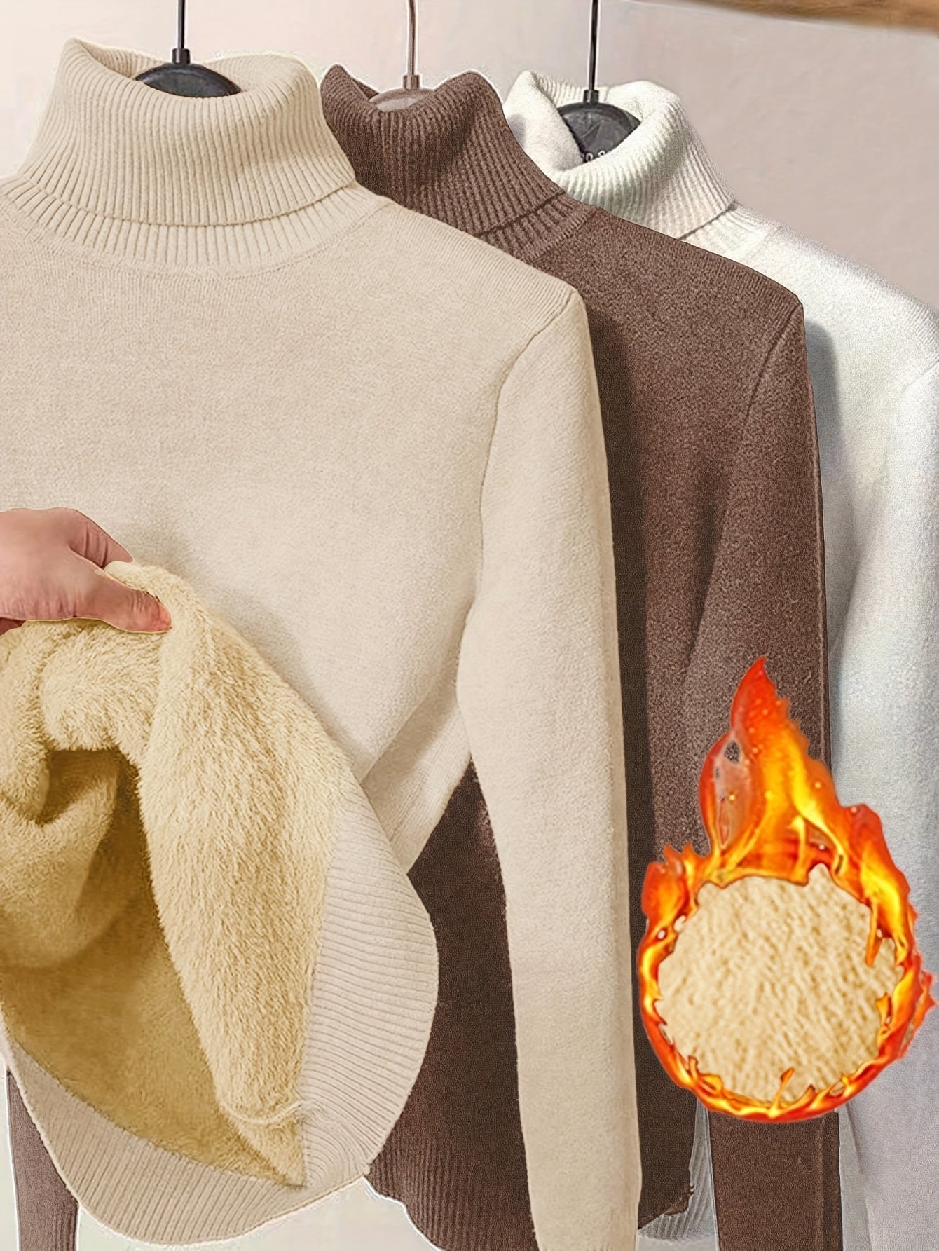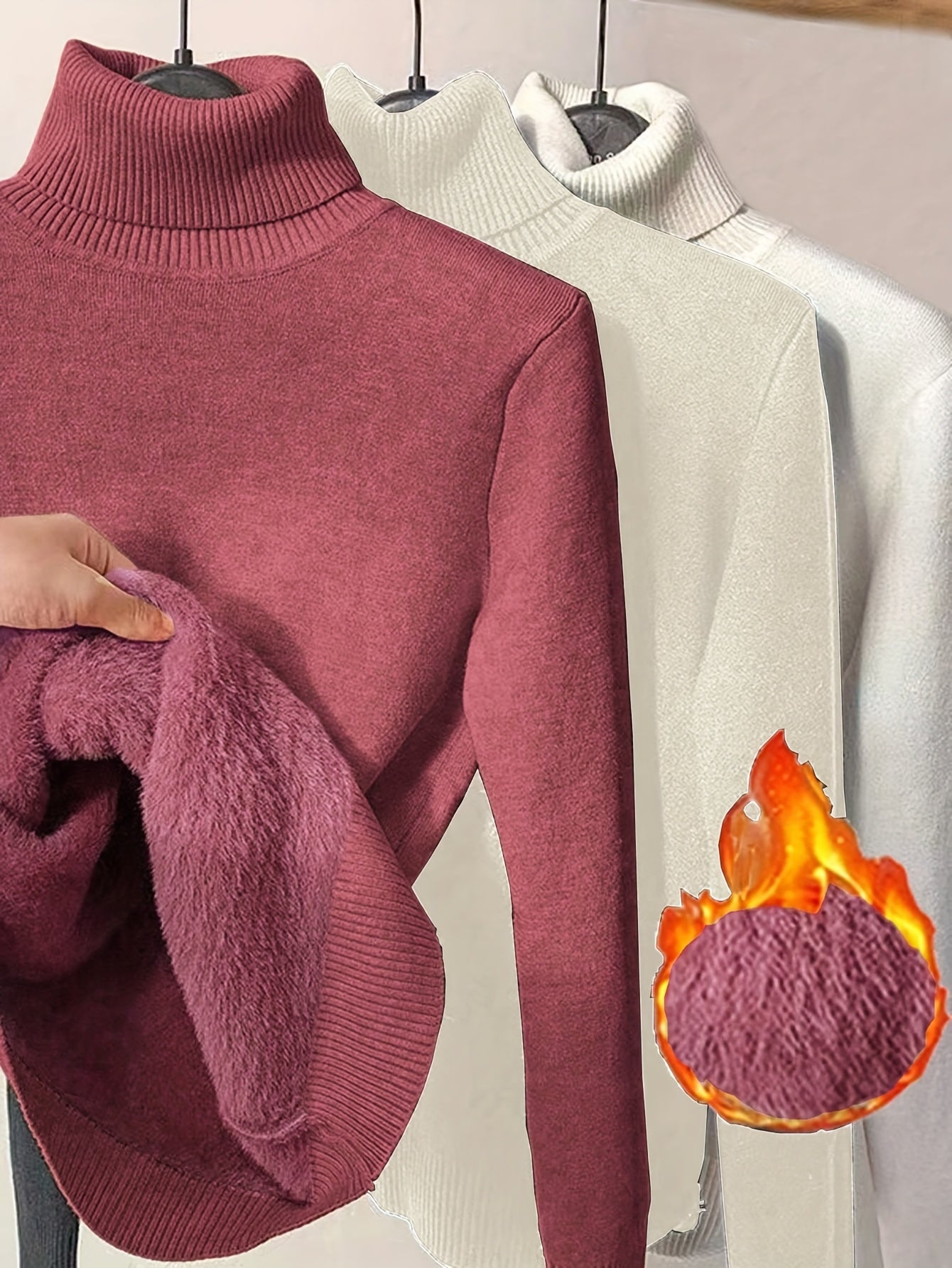 طقم سويت شيرت نسائي من 3 قطع برقبة عالية - ملابس تريكو خريف/شتاء
