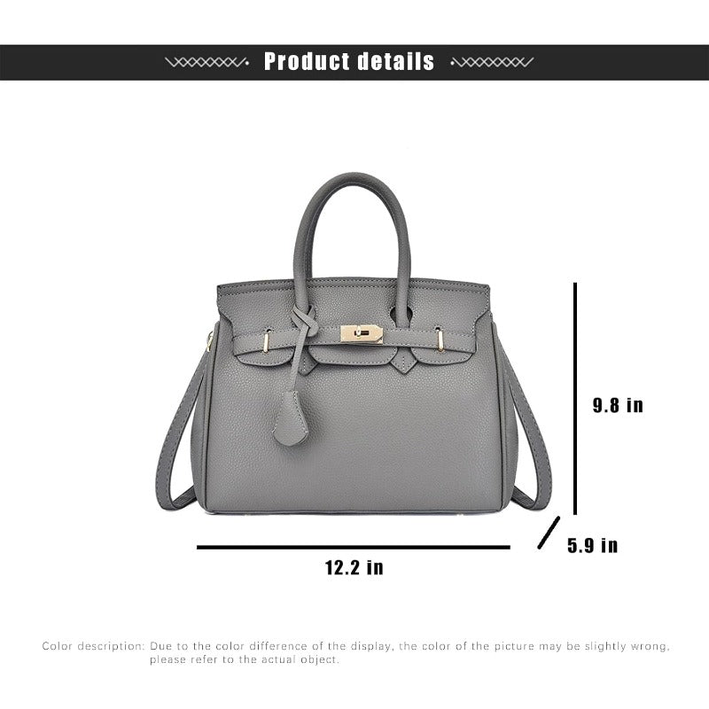 حقيبة يد نسائية كبيرة السعة - حقيبة كتف مصممة بأجزاء معدنية ذهبية اللون، وحزام قابل للتعديل، وتصميم متعدد الجيوب، وحقيبة سفر أنيقة باللون الرمادي/الذهبي