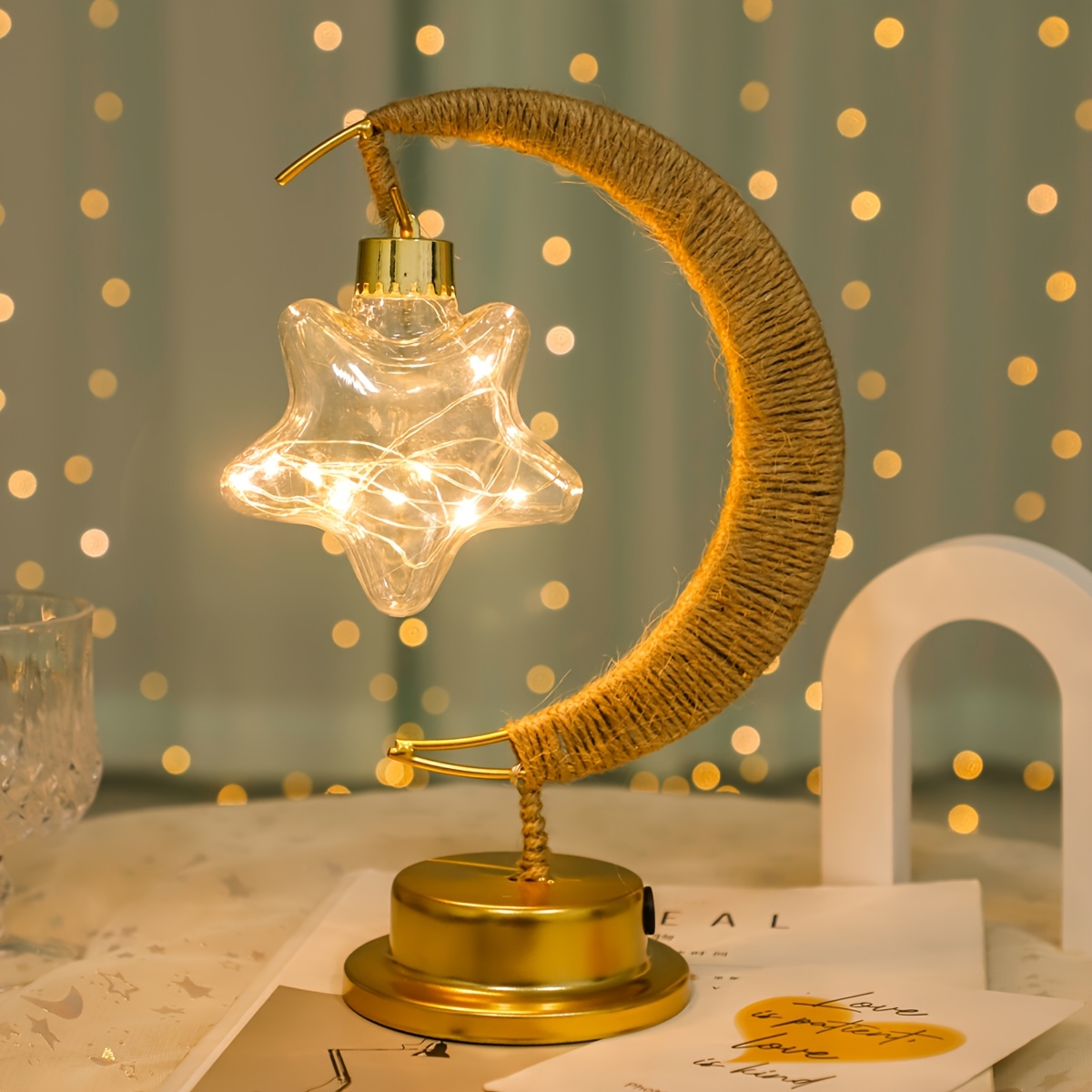 1pc LED Ironwork Rope Star Moon Lamp | Christmas, New Year, Ramadan Lighting, Warm Light, No Battery, Suitable for Holiday Parties, Home Bedroom Desk Lamp Ambience Decoration