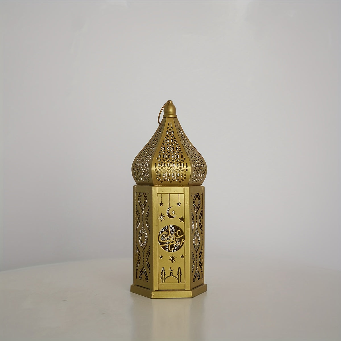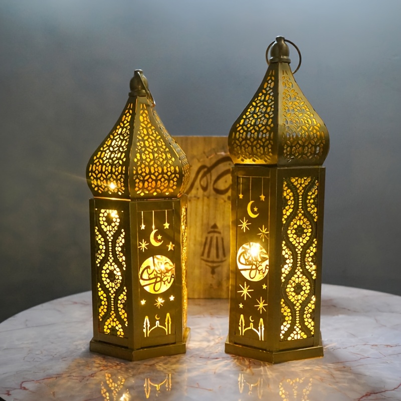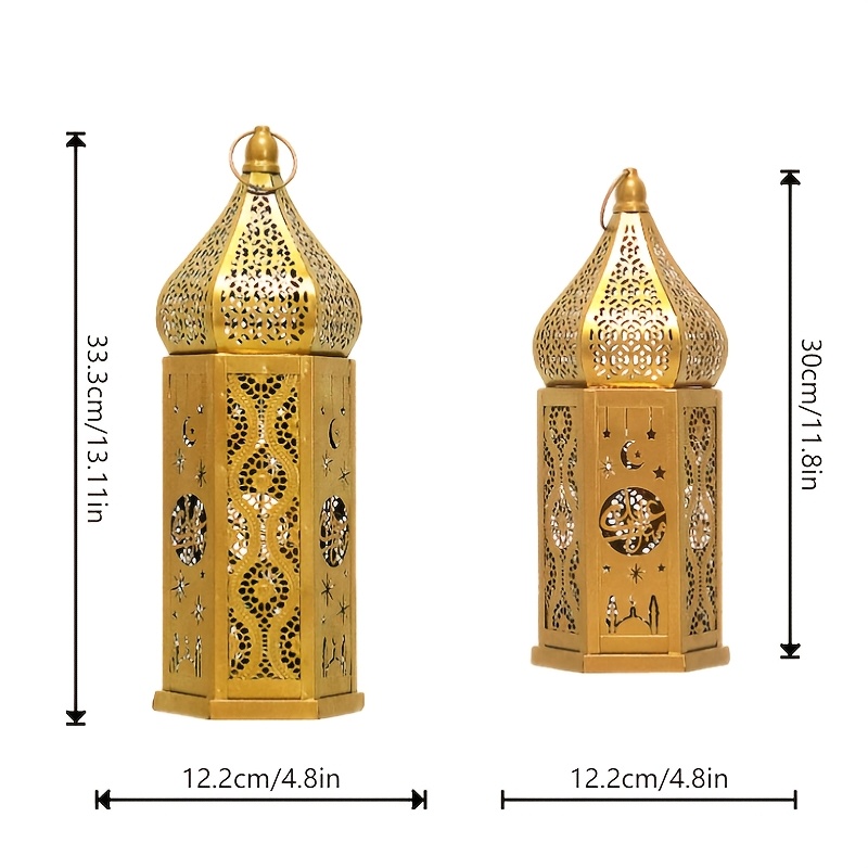 1pc Moroccan Style LED Lantern - Battery-Powered with 3 AAA Batteries (Not Included), Intricate Iron Design with Crescent Moon & Stars, Warm Glow for Ramadan Eid Weddings Home Decor, Tabletop Decoration | Decorative LED Lante