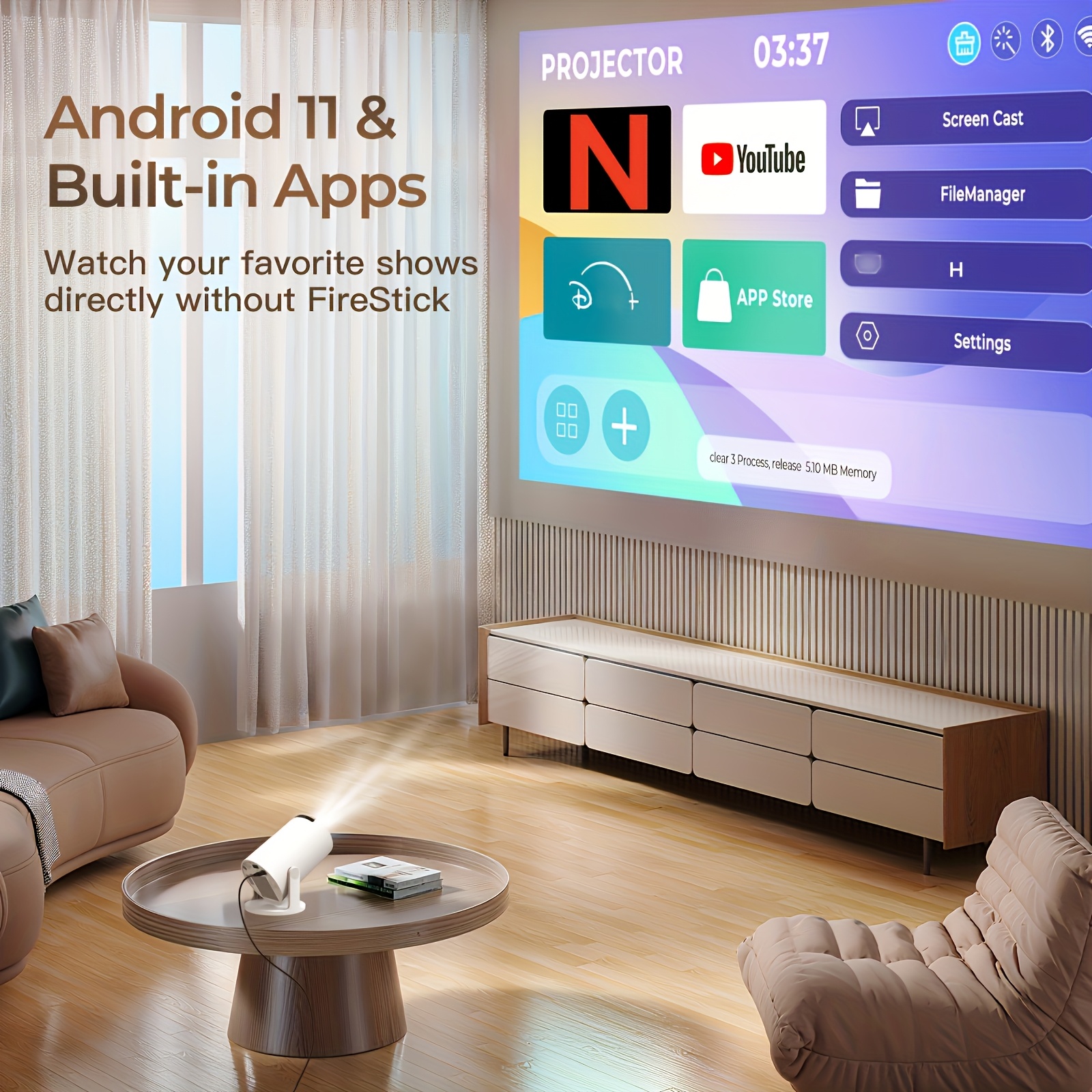 2026 HY300PRO Mini Projector — Portable 720P with WiFi, Bluetooth, 4K Support, Auto Keystone & 180° Rotation, Smart Android 11 for Home or Outdoor Use