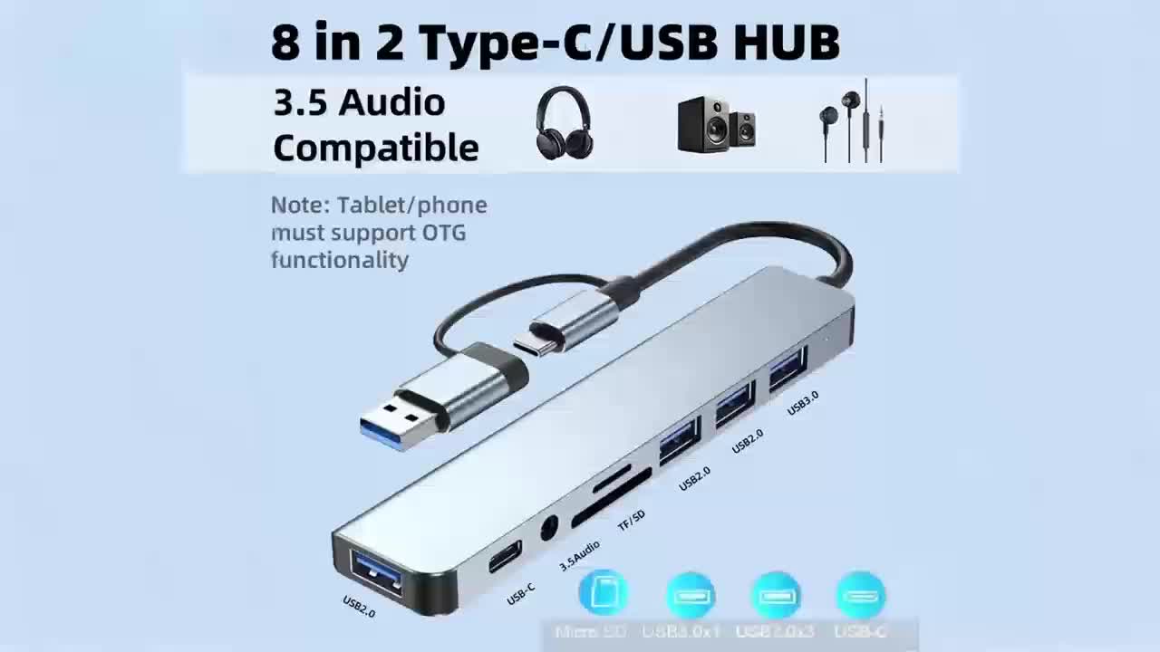 [8-in-1 USB Hub] 8-in-1 USB 3.0 Hub | Type-C Docking Station for Laptops & Desktops with Multi-Port Simultaneous Use, High-Speed Scaling, CD/TF Card Reader, Keyboard, Mouse, Hard Drive, and Fan Connections