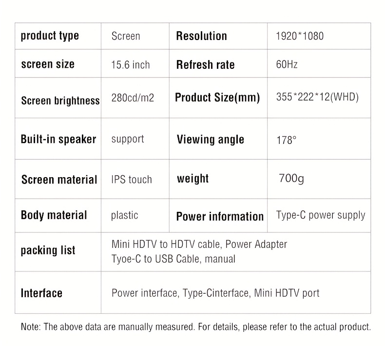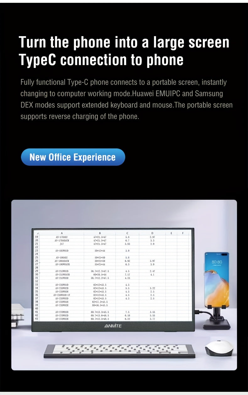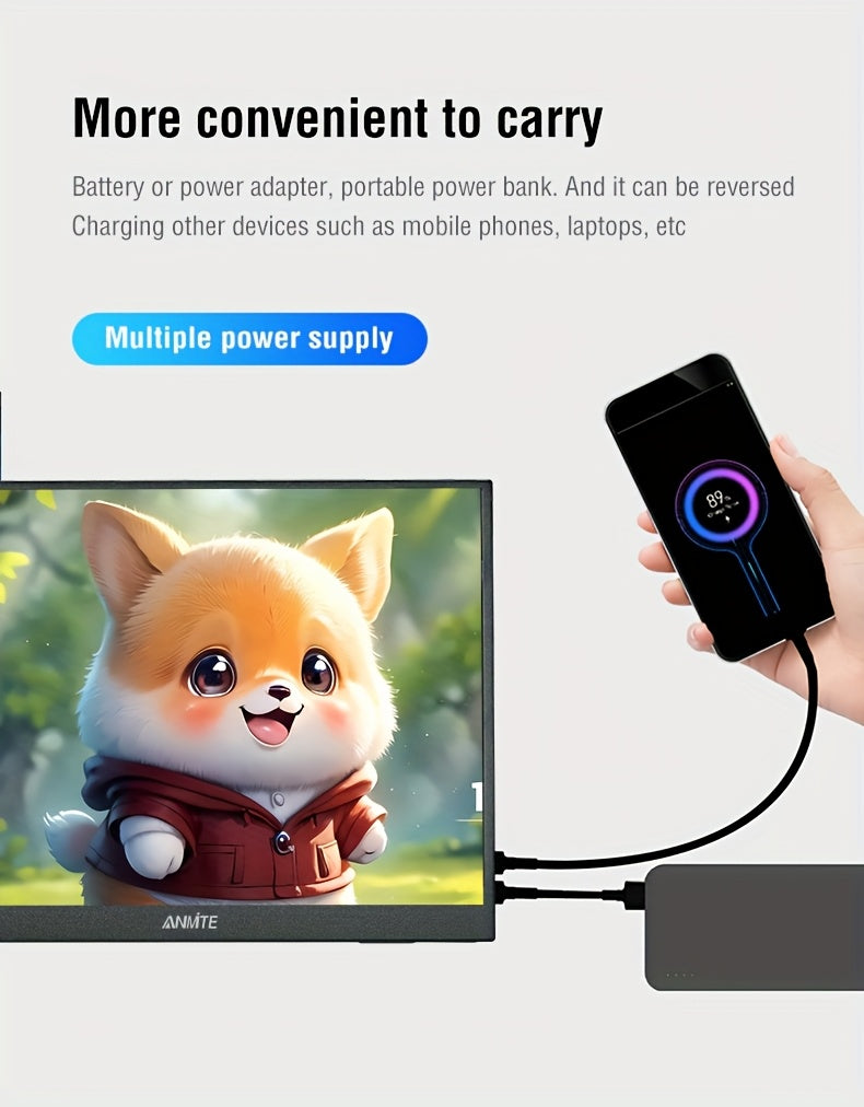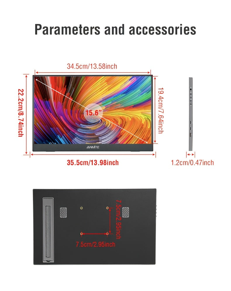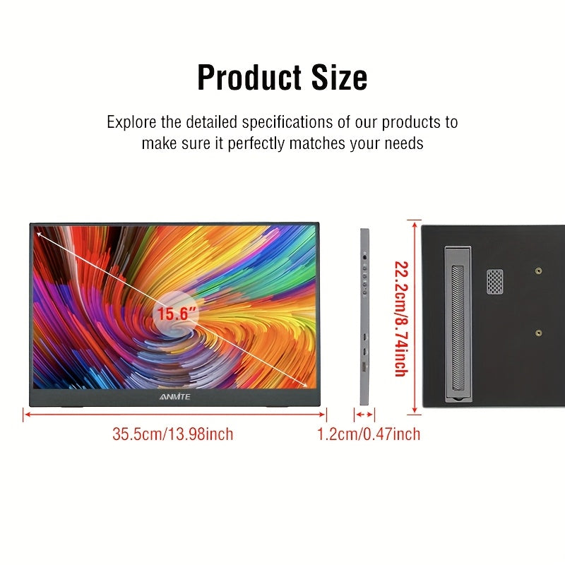 Anmite 15.6-Inch Portable Touch Monitor, 1080P HDR, Built-In Vertical Stand, Low Blue Light, Suitable for Xbox/Ps5/Switch/Mobile/Pc/Laptop Expansion.
