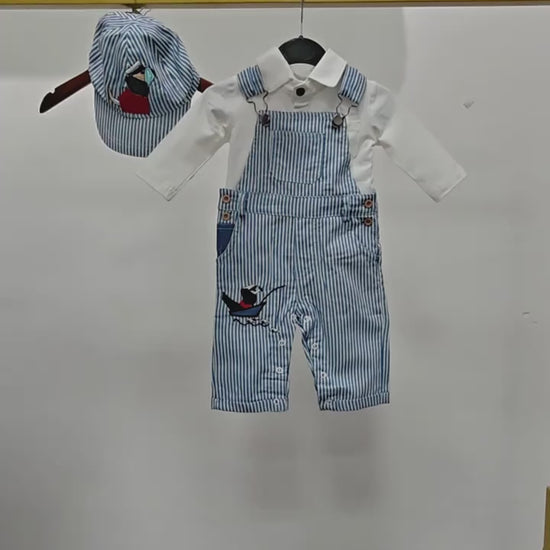 Baby Boys’ Puppy Print Overall Set – Long-Sleeve Jumpsuit with Matching Hat, Solid-Color Multi-Piece Outfit for Spring/Autumn Outdoor Wear (3–24 Months)