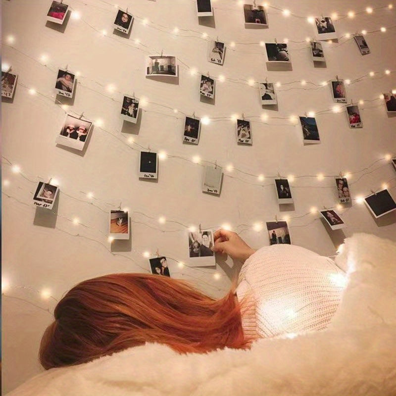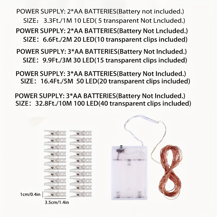 [Fairy Light Strip] 1pc 100LED Fairy Light Strip, Copper Light Rope 10M with 40 Clips, Battery Operation Garland for Bedroom, Family Party, Wedding, Christmas Decoration