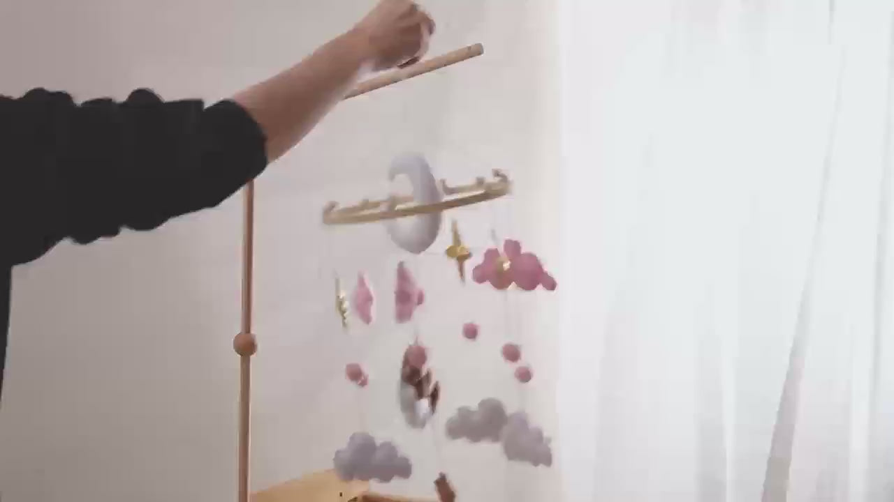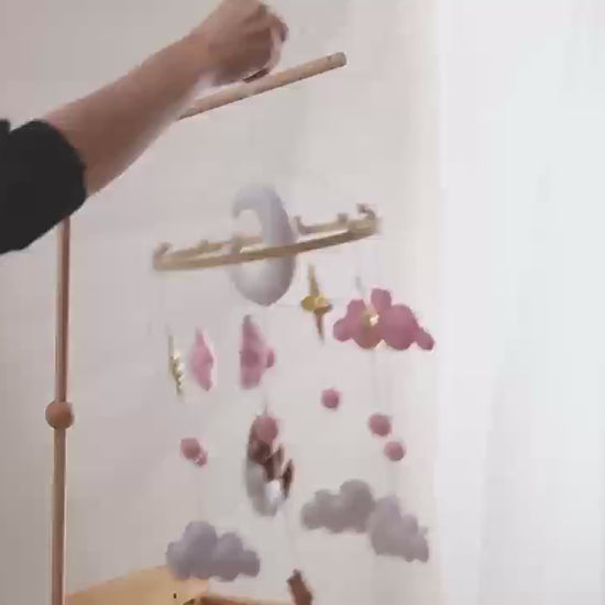 Handmade Baby Sheep & Moon-Star Crib Mobile – Soft Pastel Pink Hanging Nursery Bell with Soothing Sound, Sensory Activity Toy & Baby Shower Gift