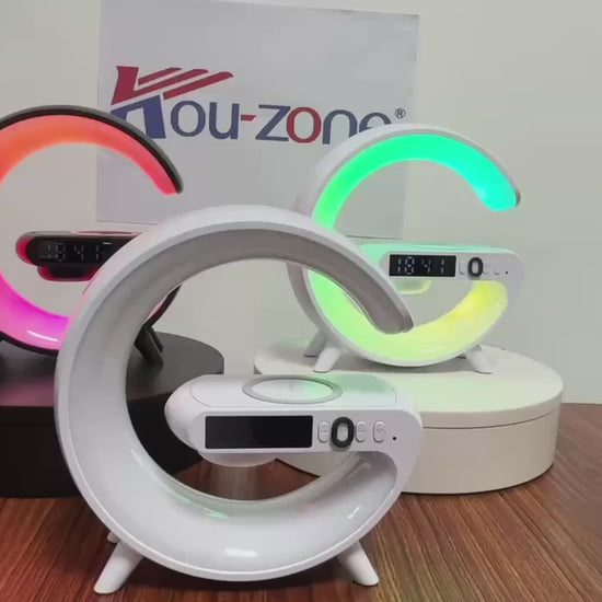 Kouzone Wireless Speaker with Dimmable Alarm Clock – Tabletop Mono Sound Machine with Sunrise Simulation, USB-C, Night Light & Rechargeable Battery