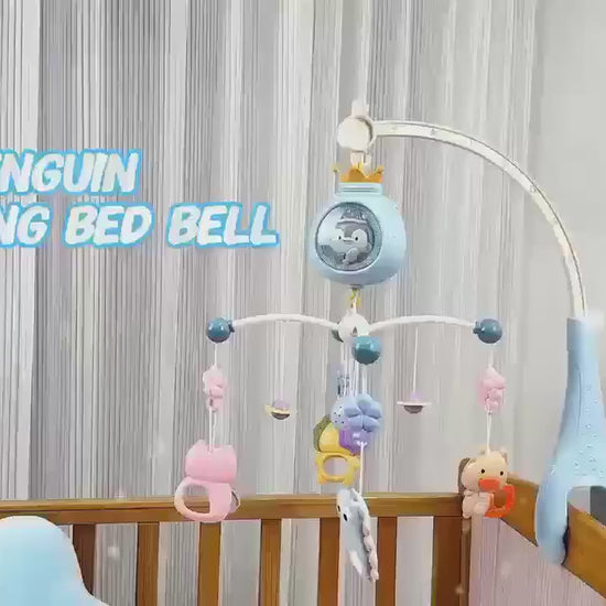 Penguin Baby Bed Mobile with Music & Lights - Rotating Brain-Stimulating Toy Featuring Adorable Penguins, Bears, and Animals - Ideal Christmas or Birthday Gift for Infants, Available in Pink/Blue, Random Colors, Penguin Gifts