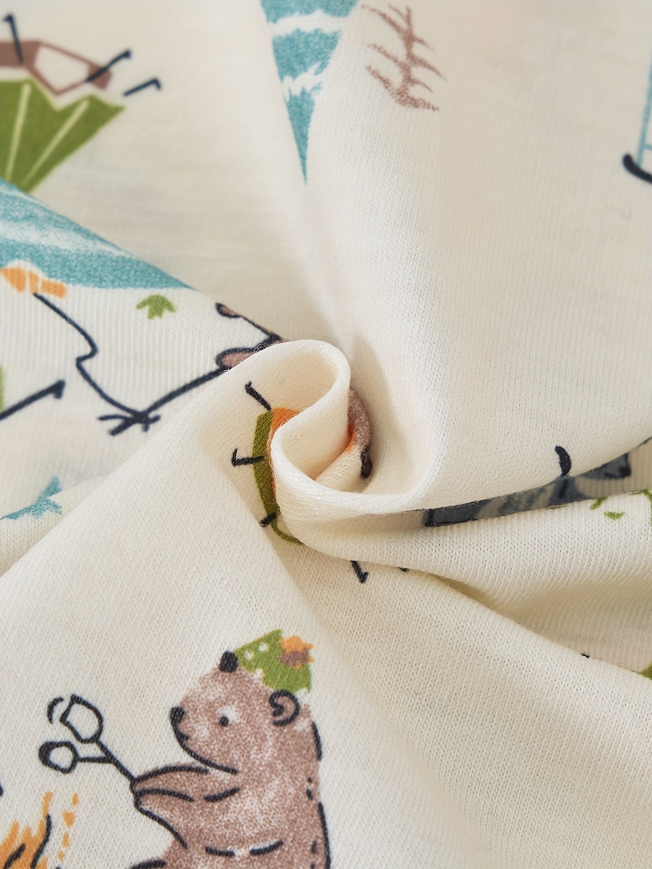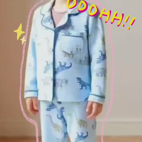Random 4-Piece (2 Sets) Boys’ Dinosaur Print Shirt & Elastic-Waist Pants – Polyester Cartoon Pajama/Home Wear Sets for Ages 2–7, Spring/Autumn/Winter