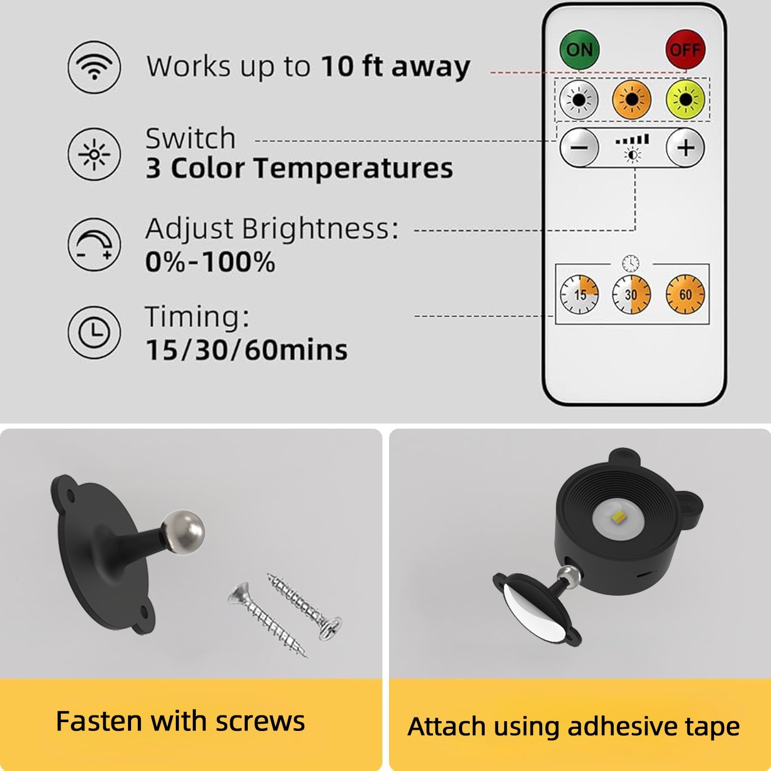 Magnetic wall lights with remote control offer two ways to operate: via buttons or a remote. The LED wall sconce includes a remote, making button operation unnecessary. You can manage all settings using the remote: turning it on/off, switching between three color temperatures, adjusting brightness, and setting a timer.