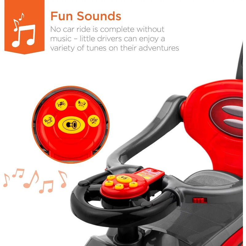 Toy Land 3-in-1 Push & Pedal Ride-On Car – Convertible Stroller-Style Vehicle with Parent Handle, Safety Belt & Sound Effects for Boys & Girls