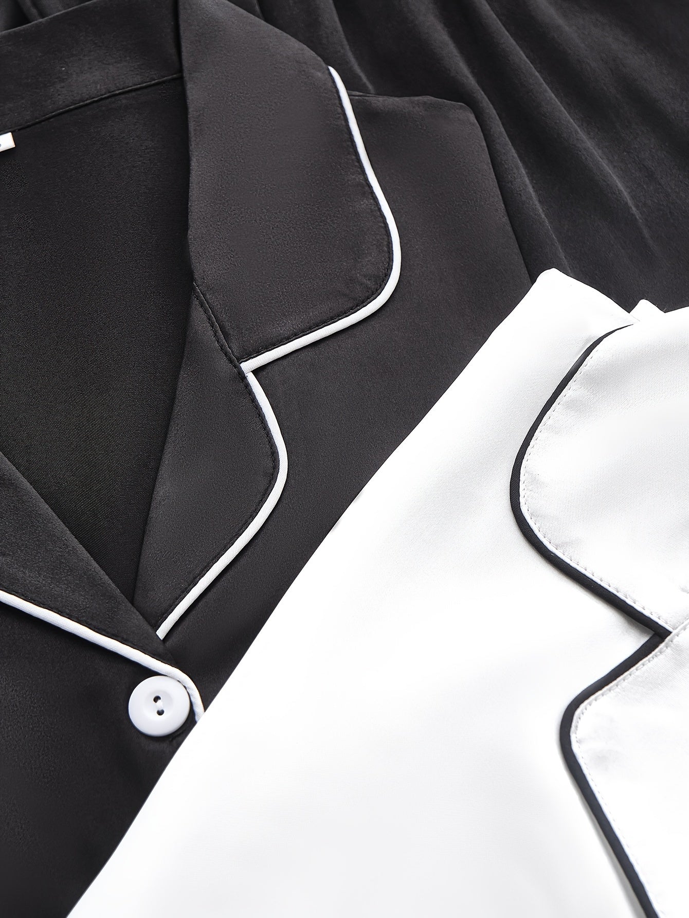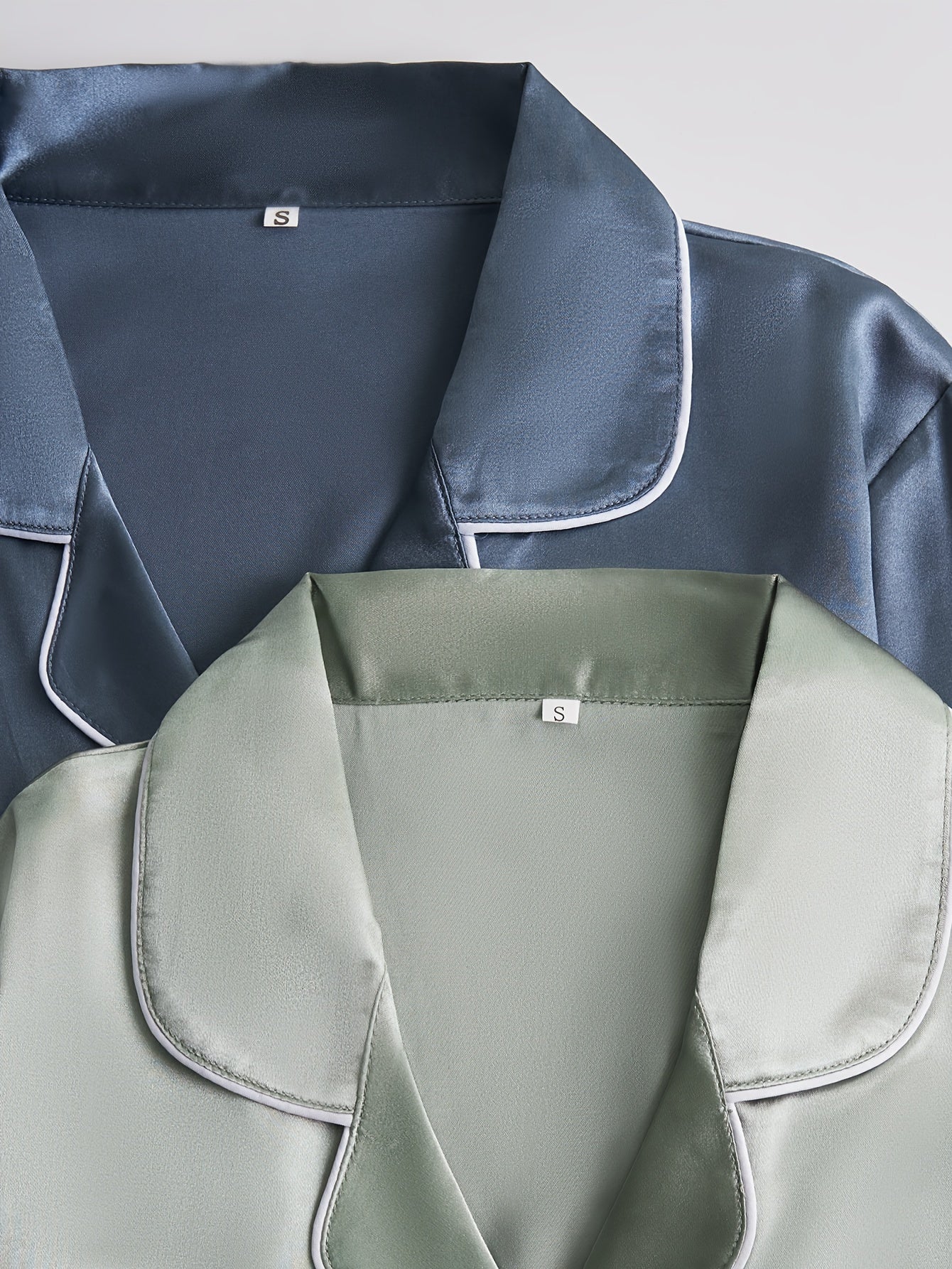 Women’s 2-Set Satin Pajama Collection – Long-Sleeve & Long-Pants Solid Color Sleepwear with Turned Collar and Elegant Button Detailing for Autumn/Winter