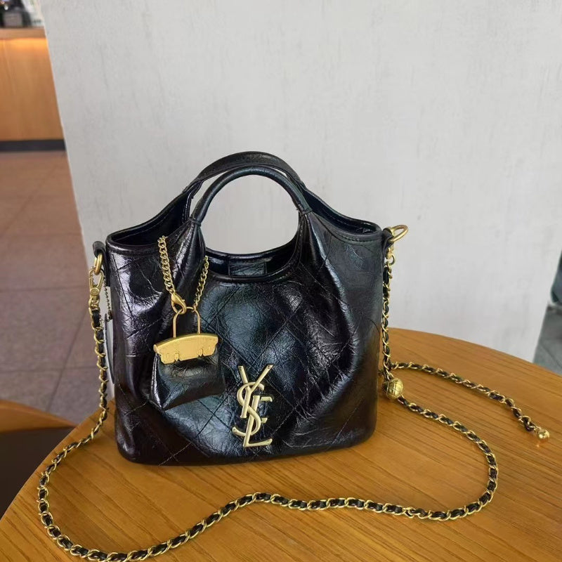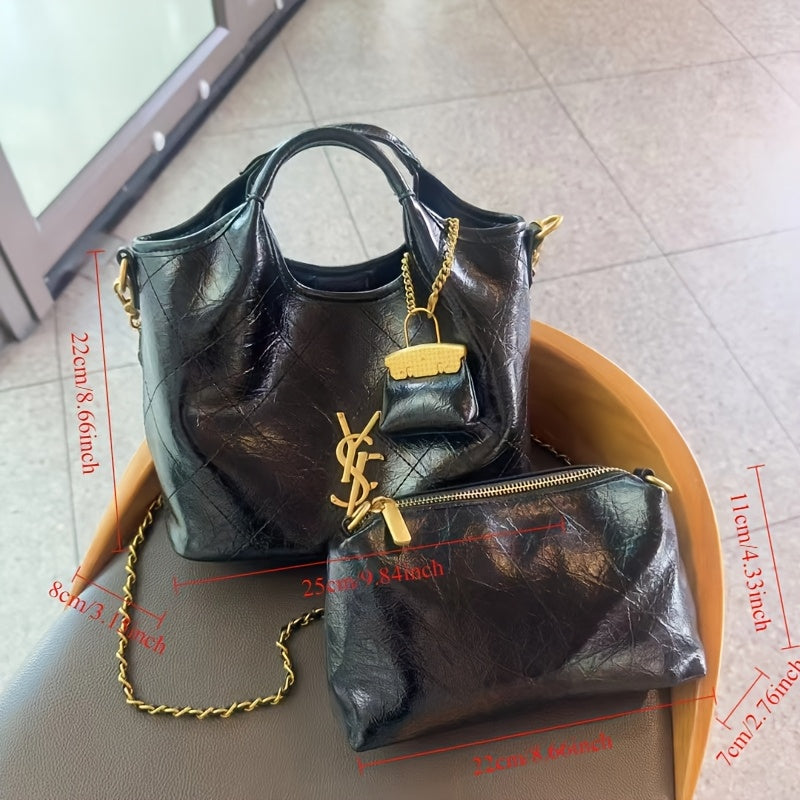 Women’s 2026 Luxury Chain-Link Convertible Handbag – Magnetic Closure Second-Layer Leather Tote with Polyester Lining, 10+ Styling Options (White/Black)