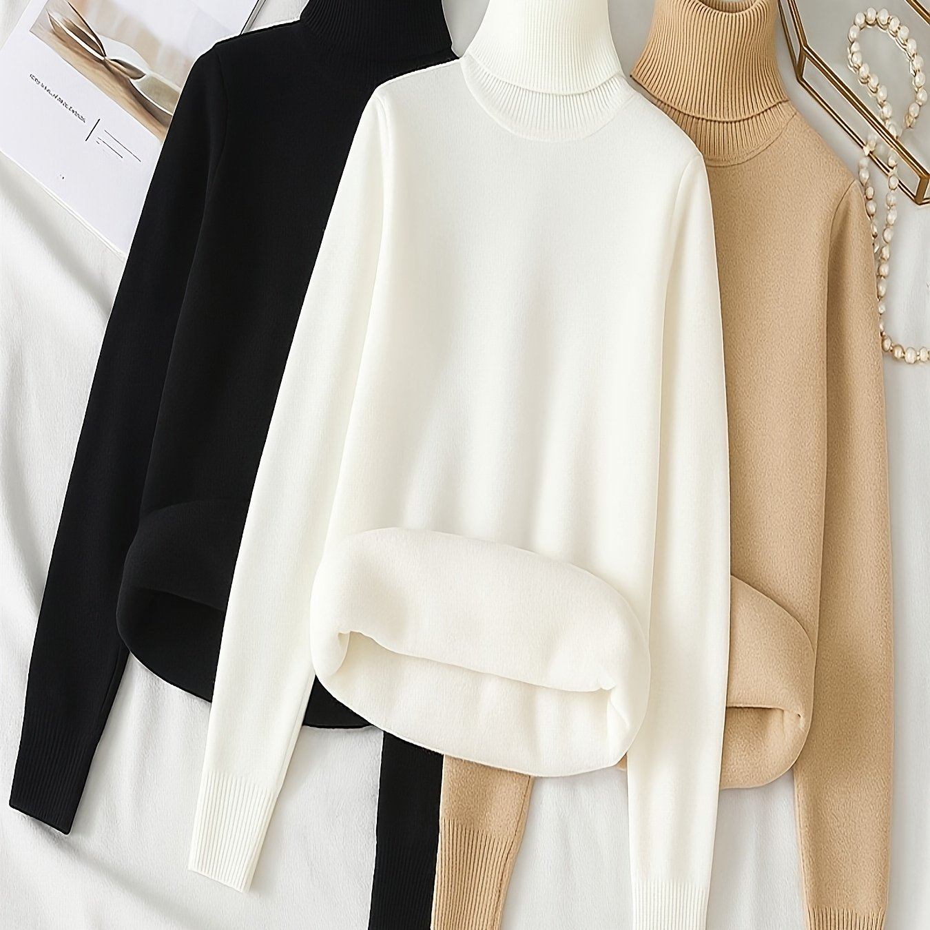 Women’s 3-Piece High Neck Plush Sweater Set – Autumn/Winter Knitwear