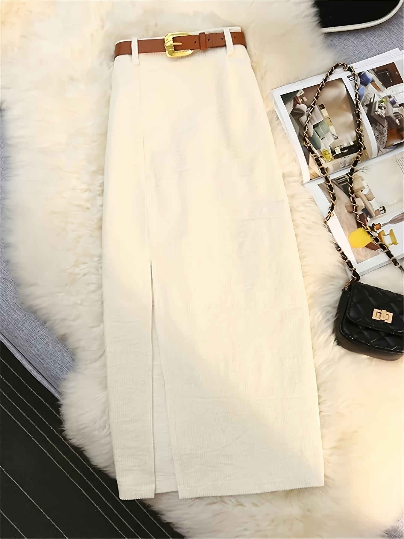 Women’s 3-Piece High-Waisted Ribbed Skirt Set – Black, Beige & Light Brown Long Skirts with Golden Belt Accents for Casual or Dressy All-Season Wear
