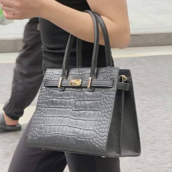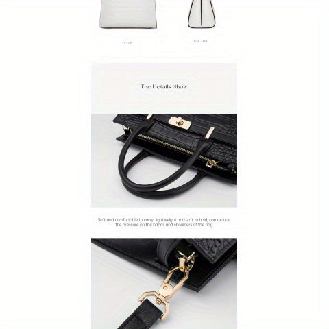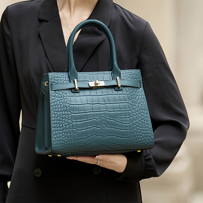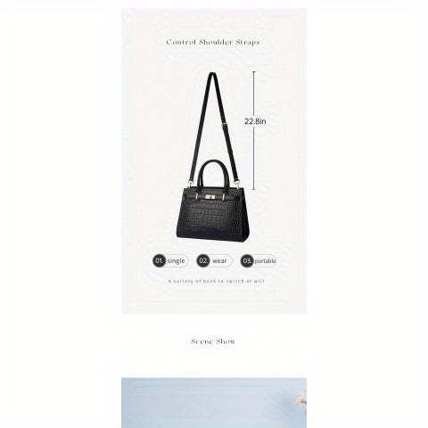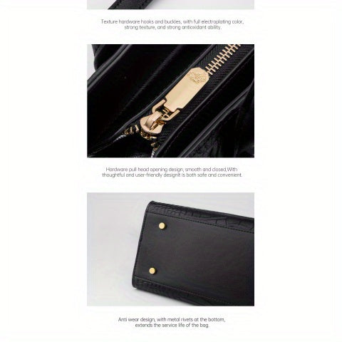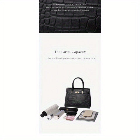 Women’s Crocodile-Pattern Tote Handbag – Large Capacity Daily Use Bag with Zipper Closure & Adjustable Shoulder Strap, Fashionable Office & Travel Accessory