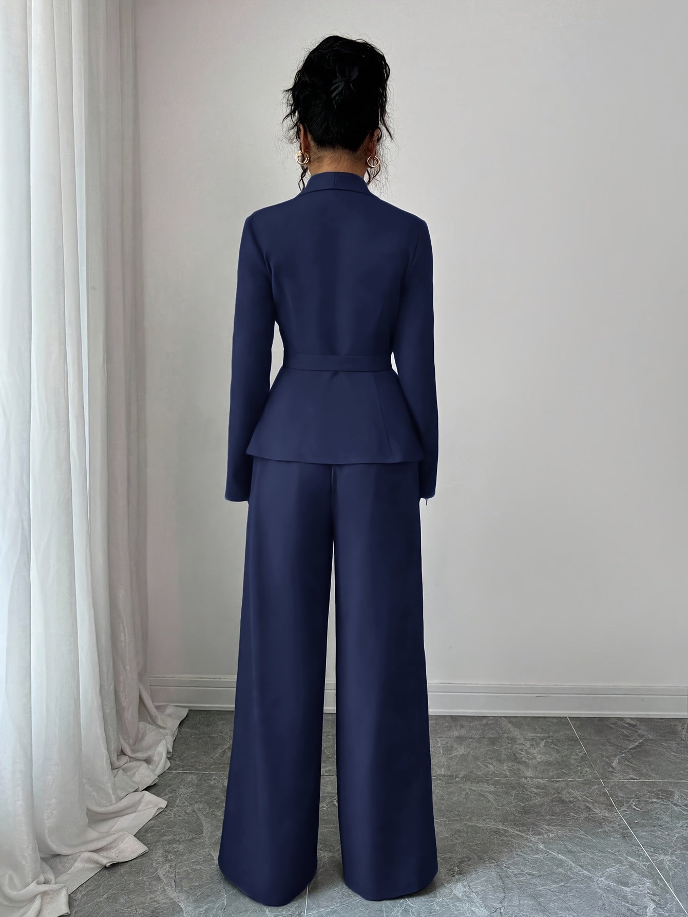 Women’s Elegant Solid Color Pants Suit – Chic Two-Piece Set with Button Details for All-Season Wear