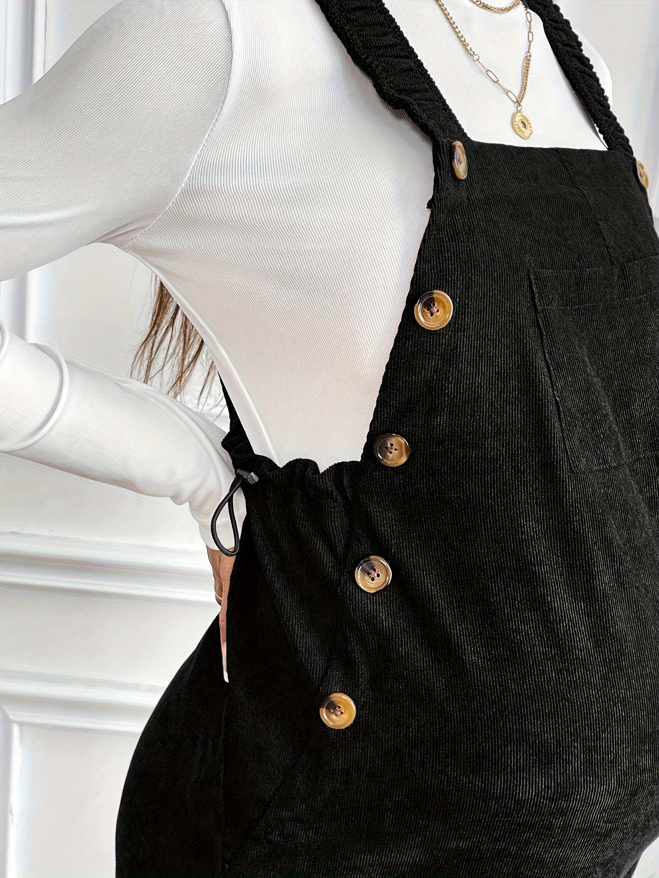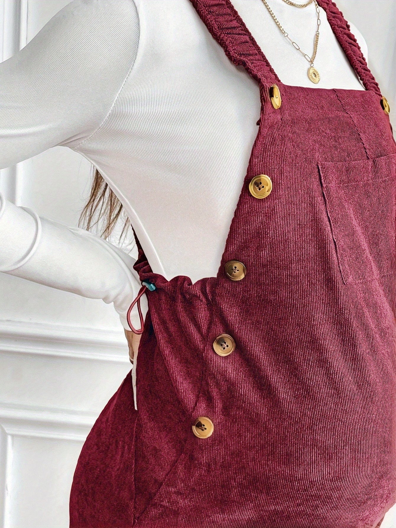 Women’s Maternity Oversized Trousers – Full-Length Corduroy-Style Pregnancy Pants with Adjustable Drawstring Waist & Golden-Tone Buttons