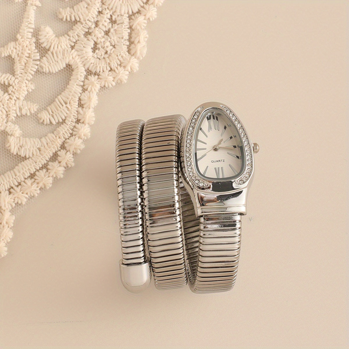 Women’s Snake-Shaped Wrap Watch with Crystals – Elegant Golden & Rose Gold Metal Band, Oval Dial, Quartz Movement, Sophisticated Fashion Timepiece