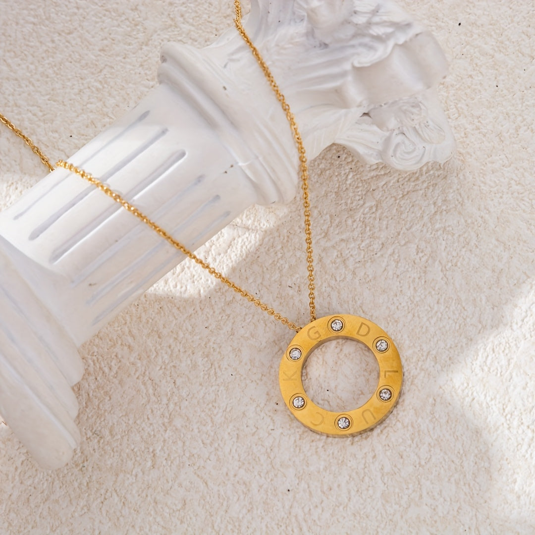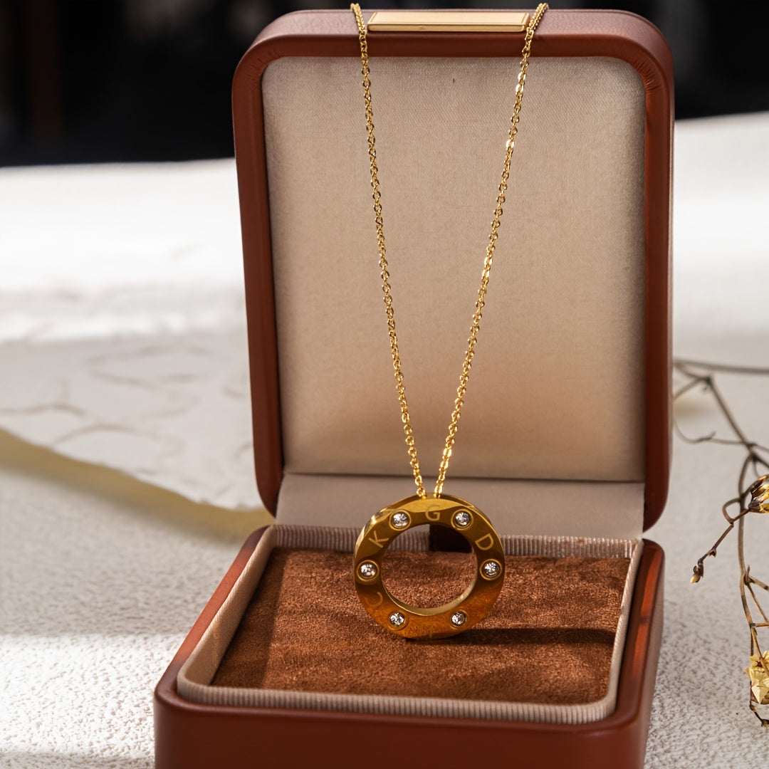Women’s Stainless Steel Circular Pendant Necklace – Minimalist Elegant Design with Polished Finish, Durable Tarnish-Resistant Chain for Daily or Special Occasions